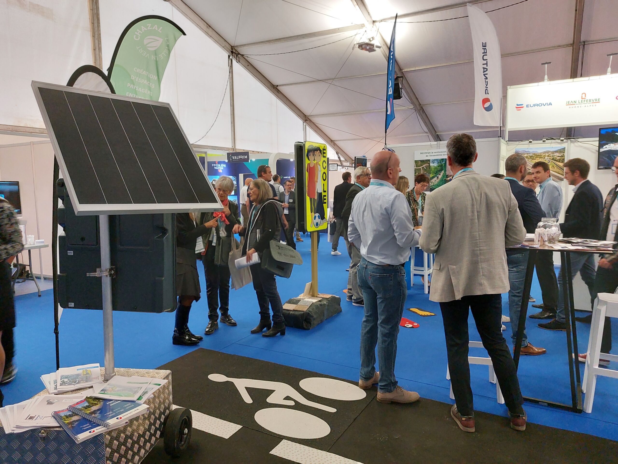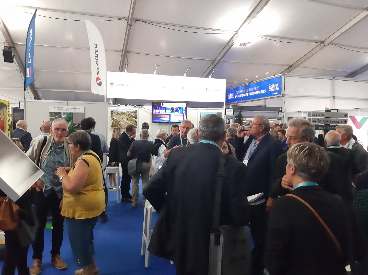 Les agences Eurovia de Grenoble, EJL de Bourgoin, Perino Bordone, SIGNATURE et Citéos ont représenté le groupe VINCI sur un stand commun pour recevoir et échanger avec les élus sur le thème « Imaginons la commune de demain ».