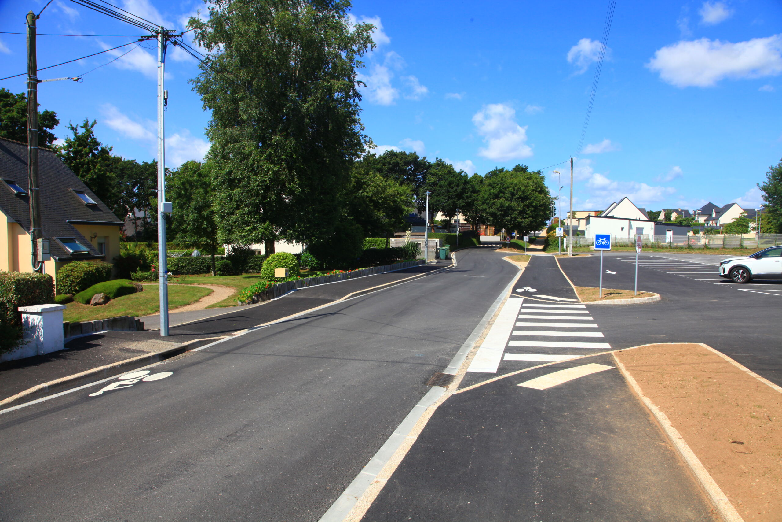 Dans le cadre du marché d’entretien de la ville de Landivisiau (29), des travaux d’aménagement ont été menés sur la rue de Keravel. Située en zone résidentielle, la rue de Keravel constitue un accès direct au centre-ville et permet la desserte d’un espace sportif. L’objectif des travaux était de sécuriser la zone en différenciant les flux piétons, cyclistes et véhicules.