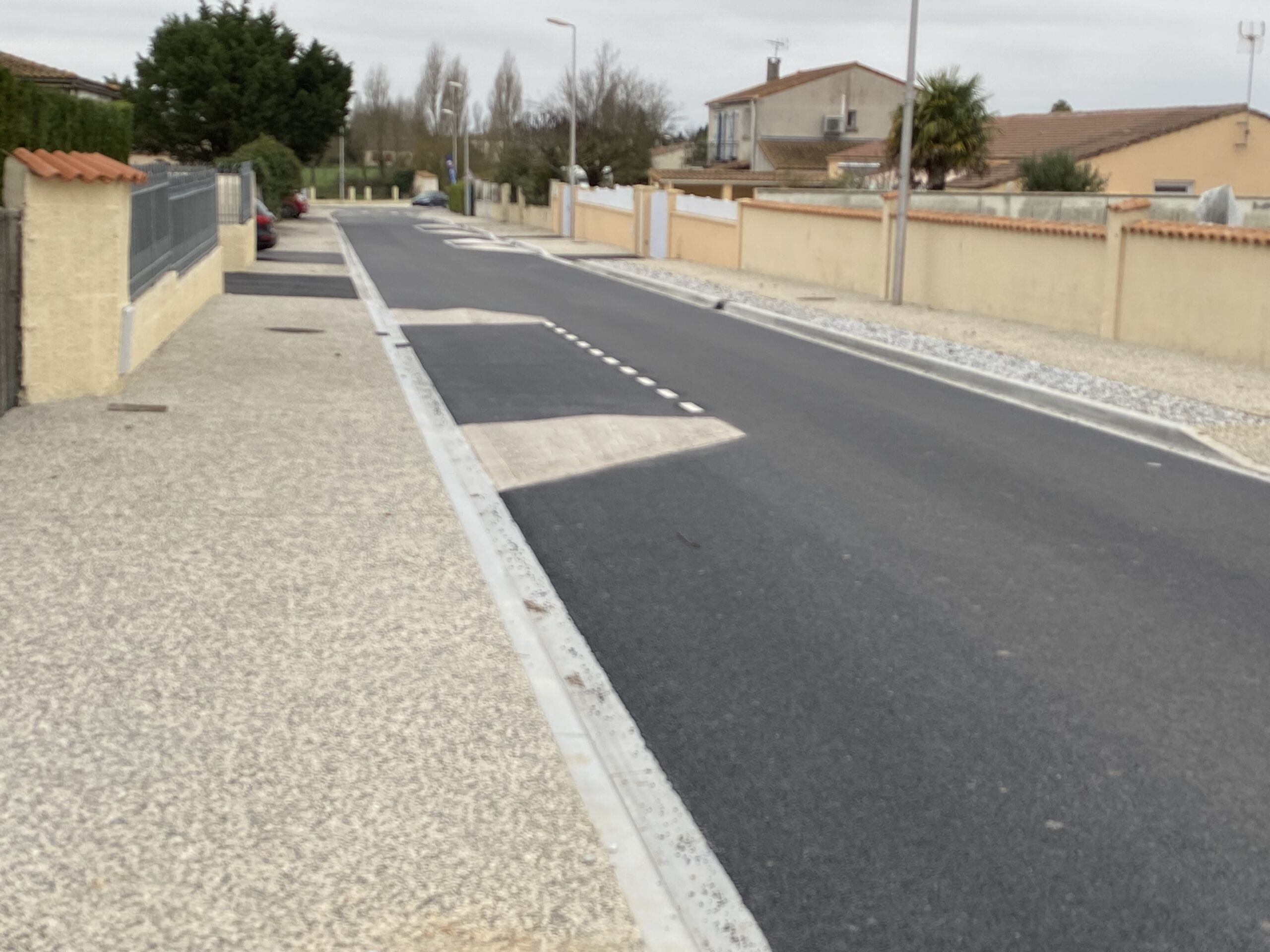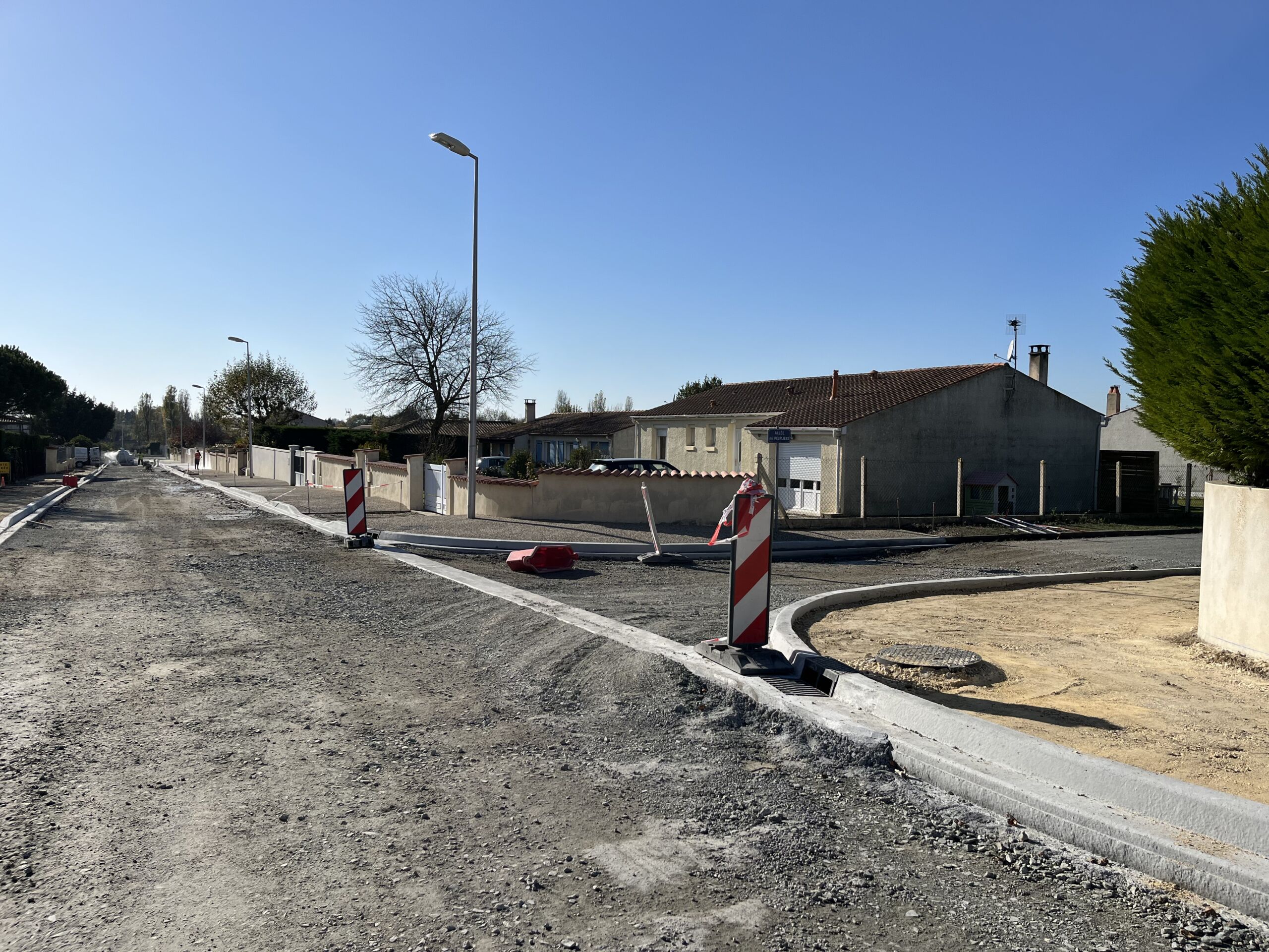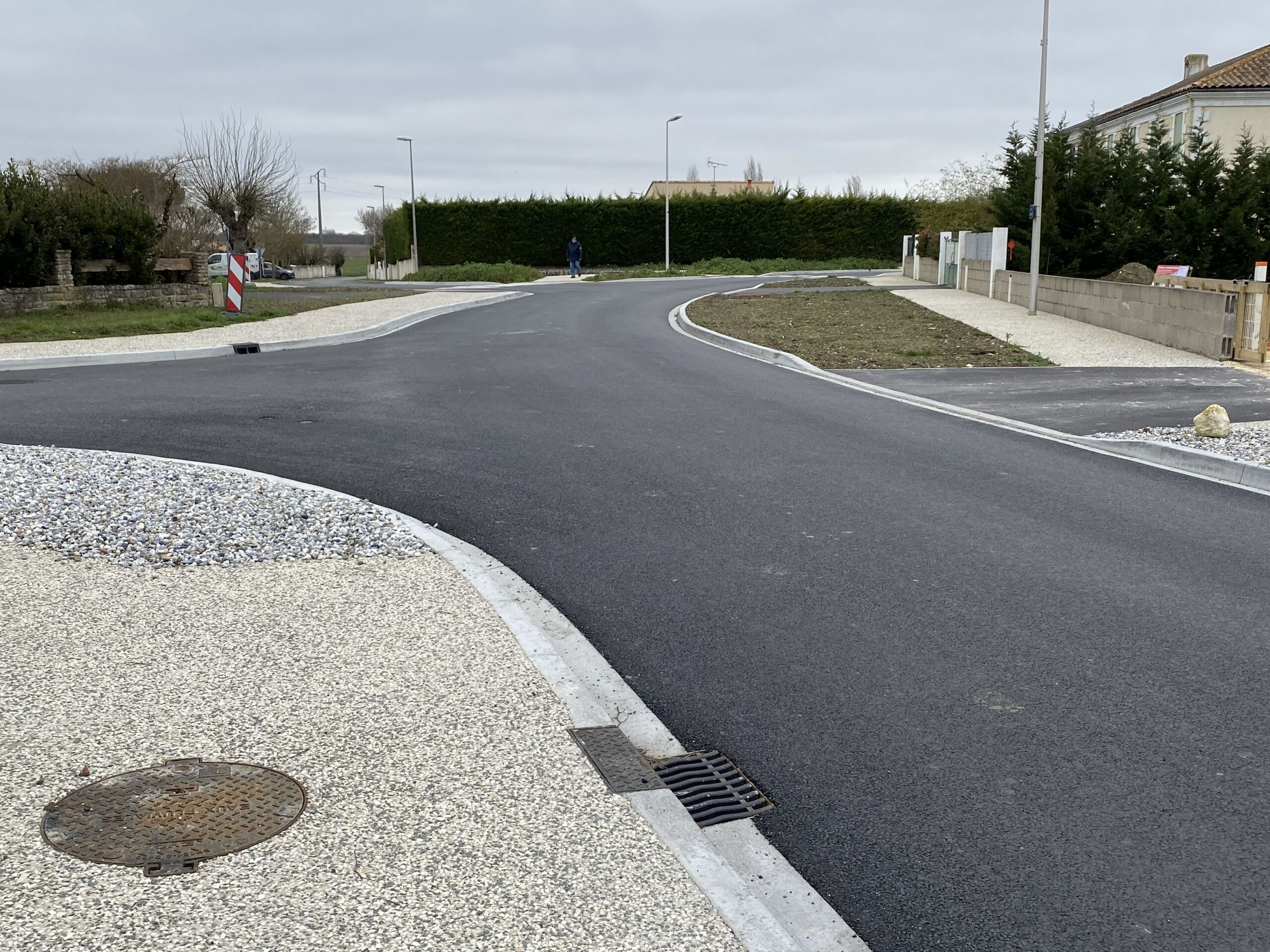 Réalisés de juin à décembre 2021, les travaux visaient l’aménagement du centre du bourg afin de faciliter l’accès à la mairie, l’école, les commerces et habitations. Les équipes ont ainsi réalisé un réseau pluvial avec la mise en place de caniveaux, la réfection des chaussées ainsi que des trottoirs et cheminements piétons en béton désactivé. Les bordures coulées en place ont été réalisées par l’agence Sec TP. Ce chantier a été réalisé en trois phases afin de limiter la gêne imposée aux riverains.