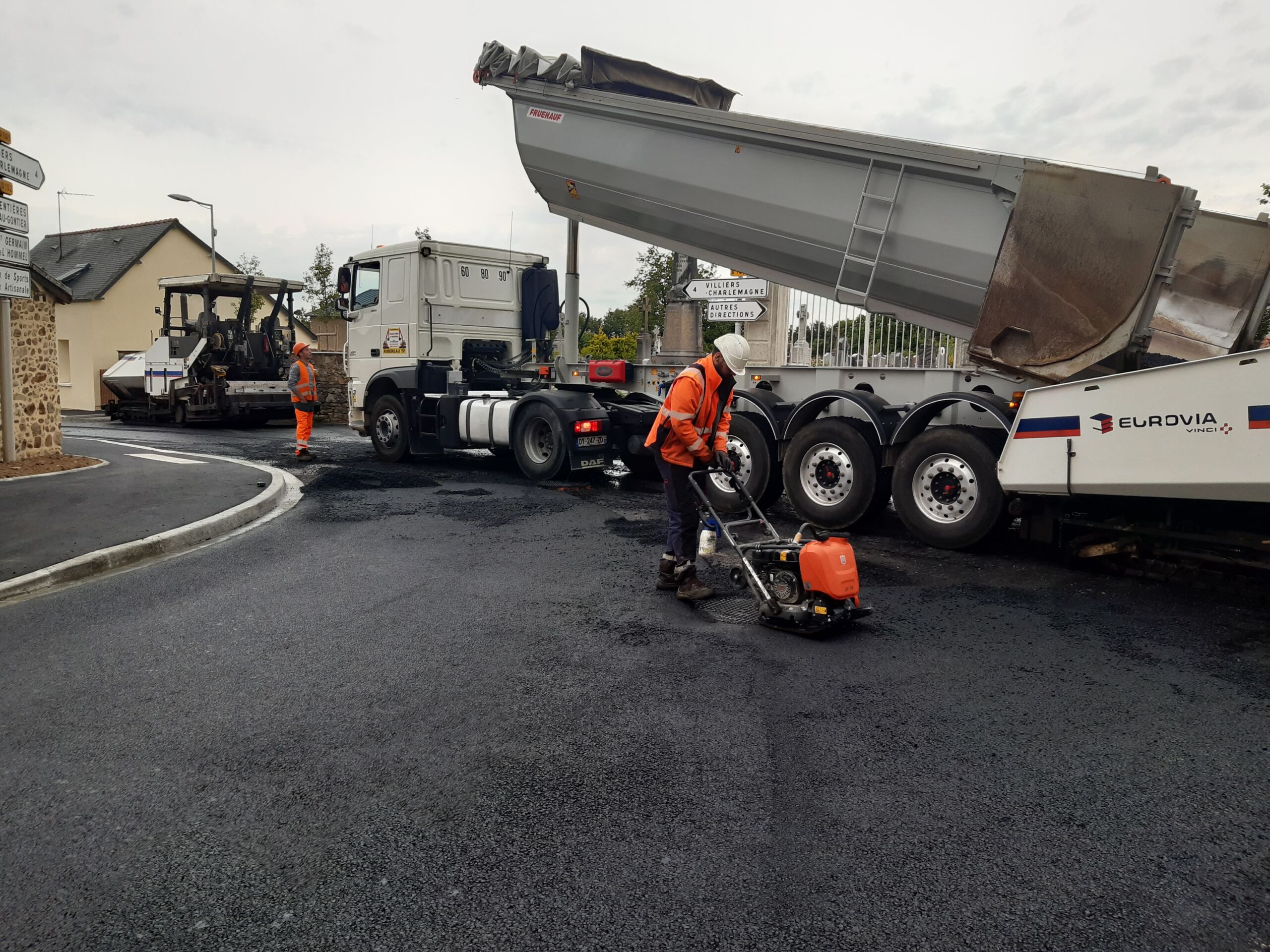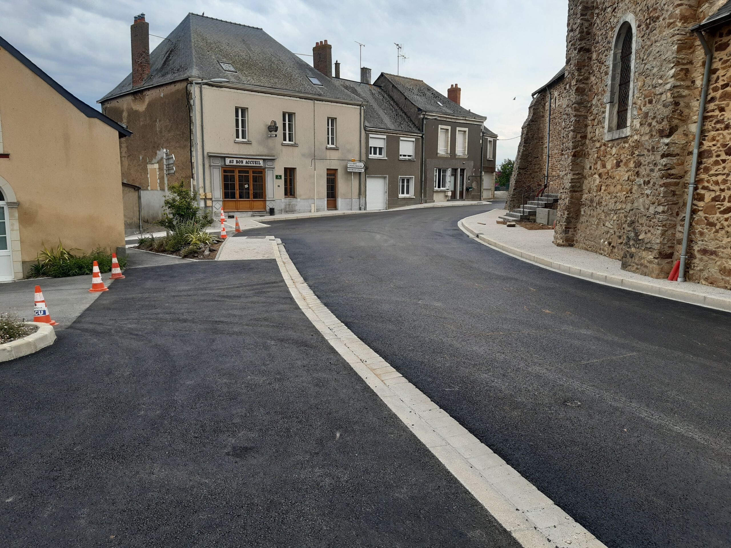 L’agence Eurovia de Laval est intervenue – de février à juin 2022 – à Ruillé-Froid-Fonds (53) afin de réaménager entièrement le bourg depuis la rue du Calvaire jusqu’à la rue d’Anjou et en passant par la place de l’église. Les équipes ont notamment réalisé les trottoirs et chaussées et ont supervisé les travaux réalisés en sous-traitance comme la signalisation horizontale et verticale ainsi que la réalisation de bétons désactivés et de bordures coulées.