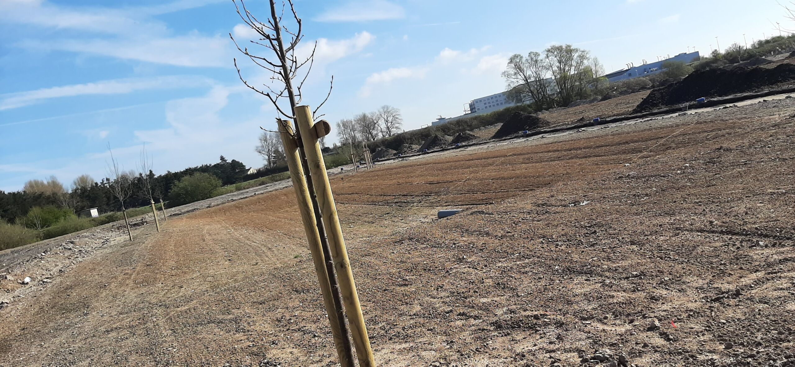 Dans une démarche environnementale, les bâtiments existants sur la friche ayant été démolis, 7 000 m³ de matériaux ont été concassés, criblés et réutilisés afin de créer la couche de forme des voiries.