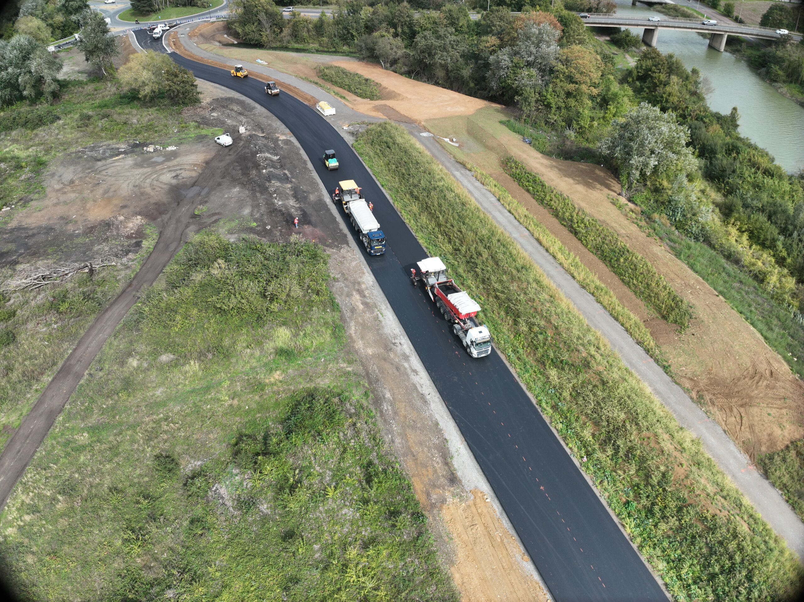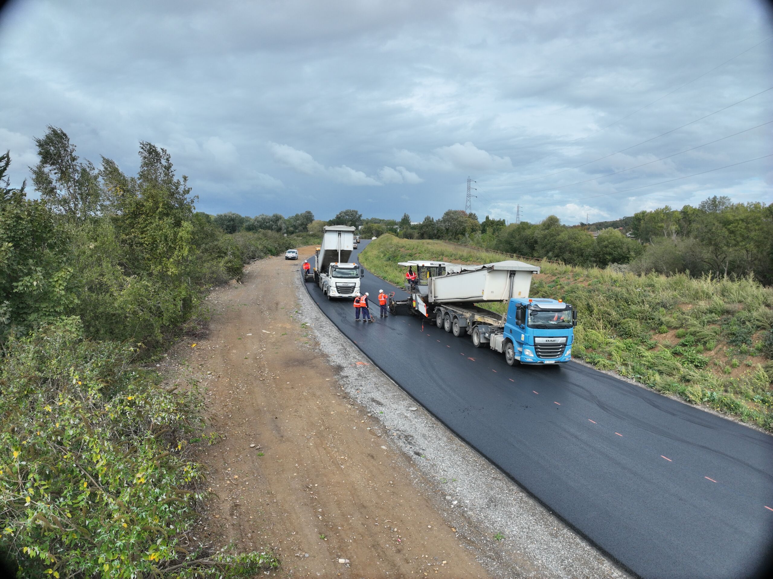 Dans la continuité de cette démarche responsable, une attention particulière a été portée au choix des matériaux : les enrobés utilisés intègrent jusqu’à 40 % d’agrégats recyclés, pour plus de 80 % des tonnages produits. Plus de 11 000 tonnes de scorgraves ont été employées, issues du site ou recyclées.