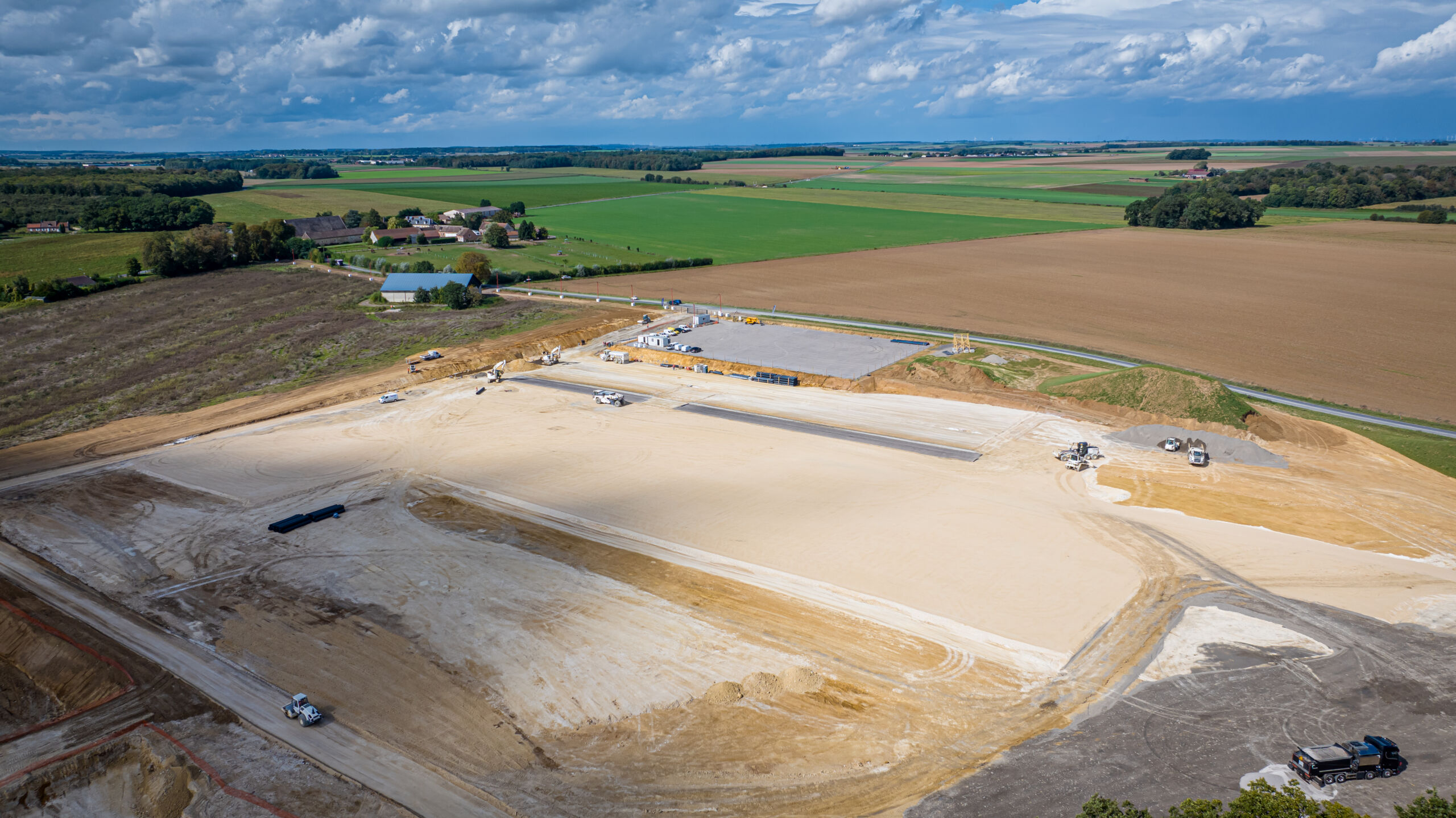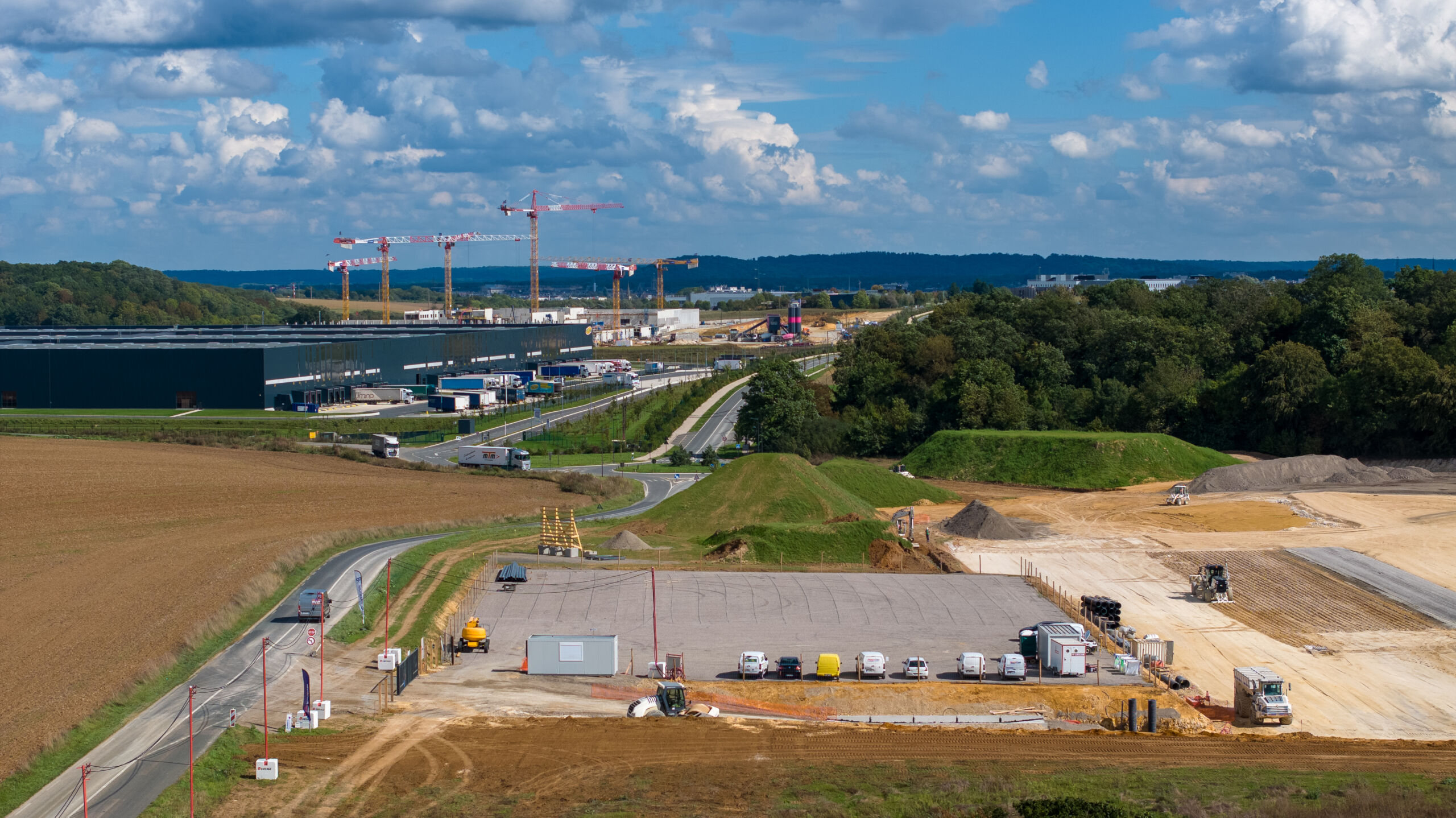 L’agence Eurovia de Compiègne intervient – depuis le 3 juillet 2023 et jusqu’au 15 décembre 2024 – pour la réalisation du lot de voiries et de réseaux divers. Les équipes réalisent les travaux de terrassement, la réalisation de la plateforme bâtiment en granulaire (via MRL), la réalisation de chaussées drainantes avec le produit Hydrovia® et de chaussées granulaires, la création de bassins tampons, de tranchées drainantes, de tranchées pour les réseaux techniques et d’aménagements paysagers.