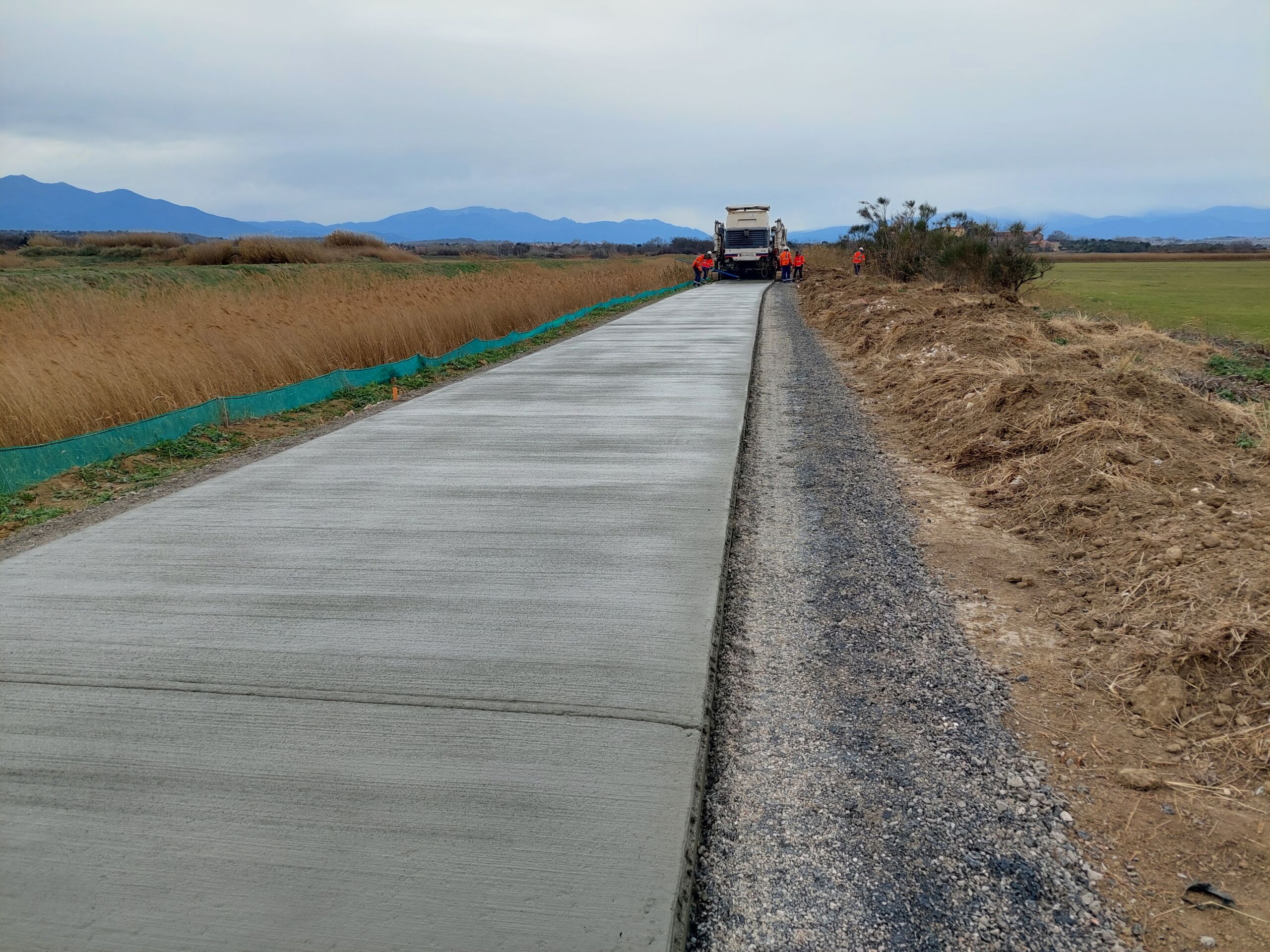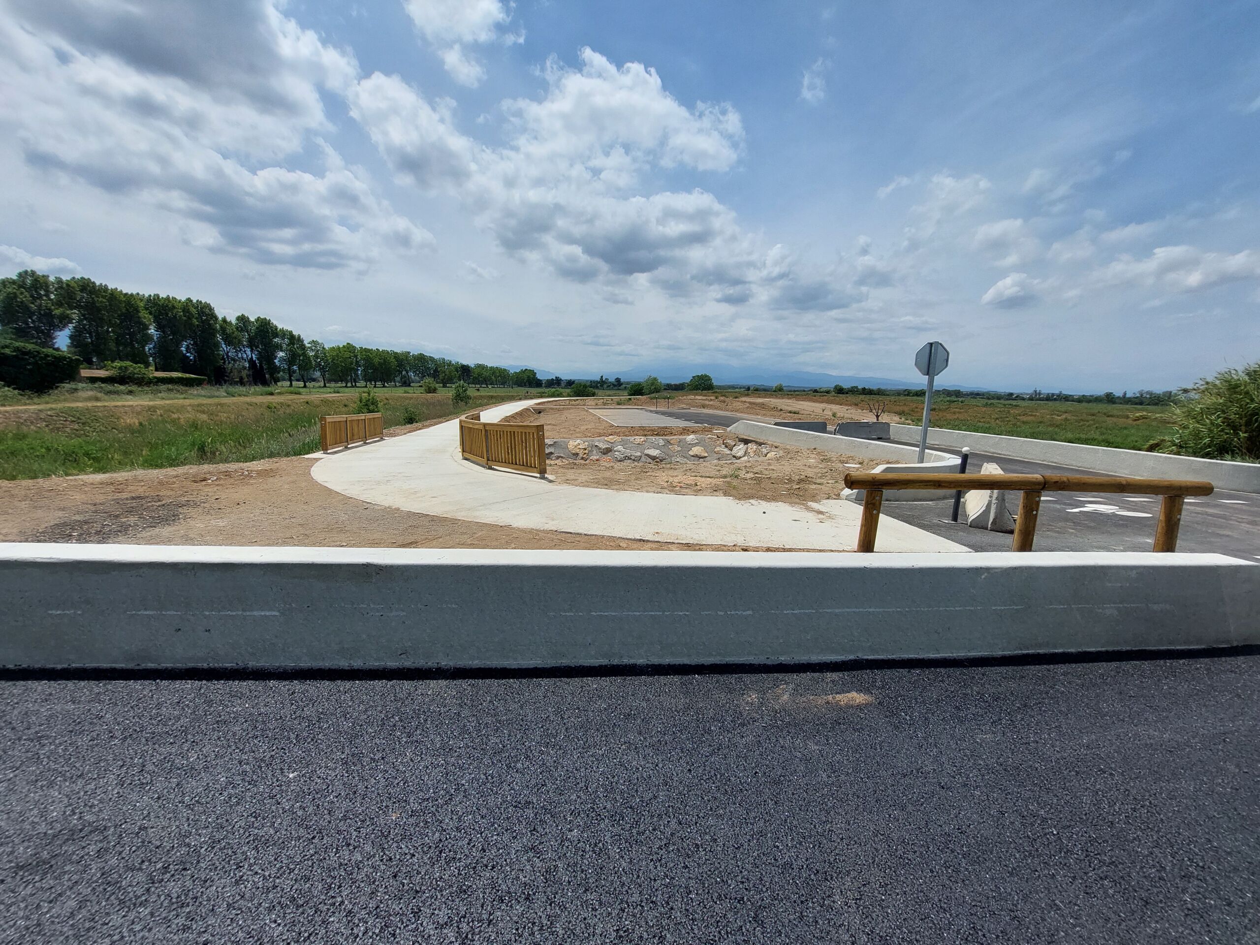 Le groupement composé de l’agence Eurovia de Perpignan (mandataire) et de Pull Francis a réalisé les travaux d’aménagement du 30 août 2022 au 14 juin 2023. Les équipes ont créé 400 ml de pistes en stabilisé, 2 aires de covoiturage et 4 km de pistes en béton extrudé dont 14 000 tonnes de 0/80 et 5 000 tonnes de 0/31.5 sont issues de chantiers de démolition. Afin de respecter la faune et la flore locale, la préparation du terrain a été réalisée avant l’hiver 2022 et la réalisation du béton au printemps 2023.