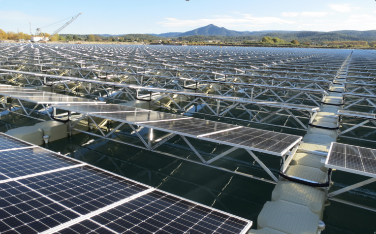 L’agence Eurovia d’Aix-en-Provence et VINCI Construction Maritime et Fluvial interviennent comme sous-traitant d’Omexom (VINCI Energies) pour la création d’un parc photovoltaïque flottant à Peyrolles-en-Provence (13). Cette centrale solaire de 12,6 ha vise la production d’électricité et devrait attester de performances supérieures à celles d’une centrale classique du fait de sa position sur l’eau, permettant le refroidissement naturel des panneaux photovoltaïques. Les 43 776 panneaux photovoltaïques produiront 14,7 MWc – Mégawatt-crêtes – équivalent à la consommation électrique de 25 000 habitants soit 6 400 foyers.
