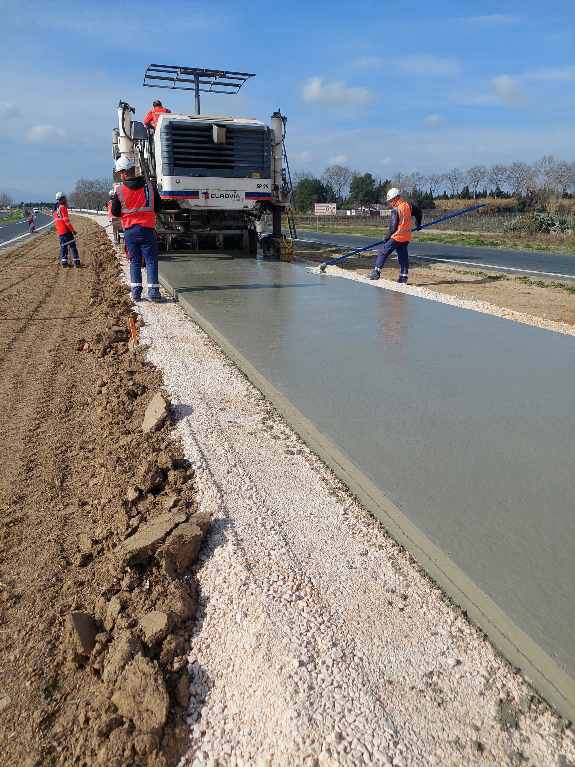 Les équipes d’Eurovia (mandataire), accompagnées de l’entreprise PULL, ont été mobilisées de fin janvier à début mars 2022 afin de réaliser une nouvelle piste cyclable le long de la RD 612, un axe routier structurant situé au sud de Perpignan. Cette nouvelle voie douce offre une alternative de déplacements plus écologiques entre les deux communes d’Elne et de Saint-Cyprien (66).