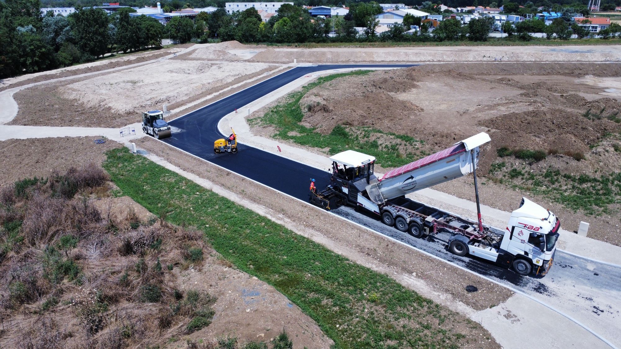 L’agence Eurovia de La Rochelle est intervenue pour la préparation de l’aménagement de ce nouvel espace. Les équipes ont réalisé des travaux de terrassement, la création des réseaux d’assainissement, des voiries, la création de trottoirs et la pose de bordures.