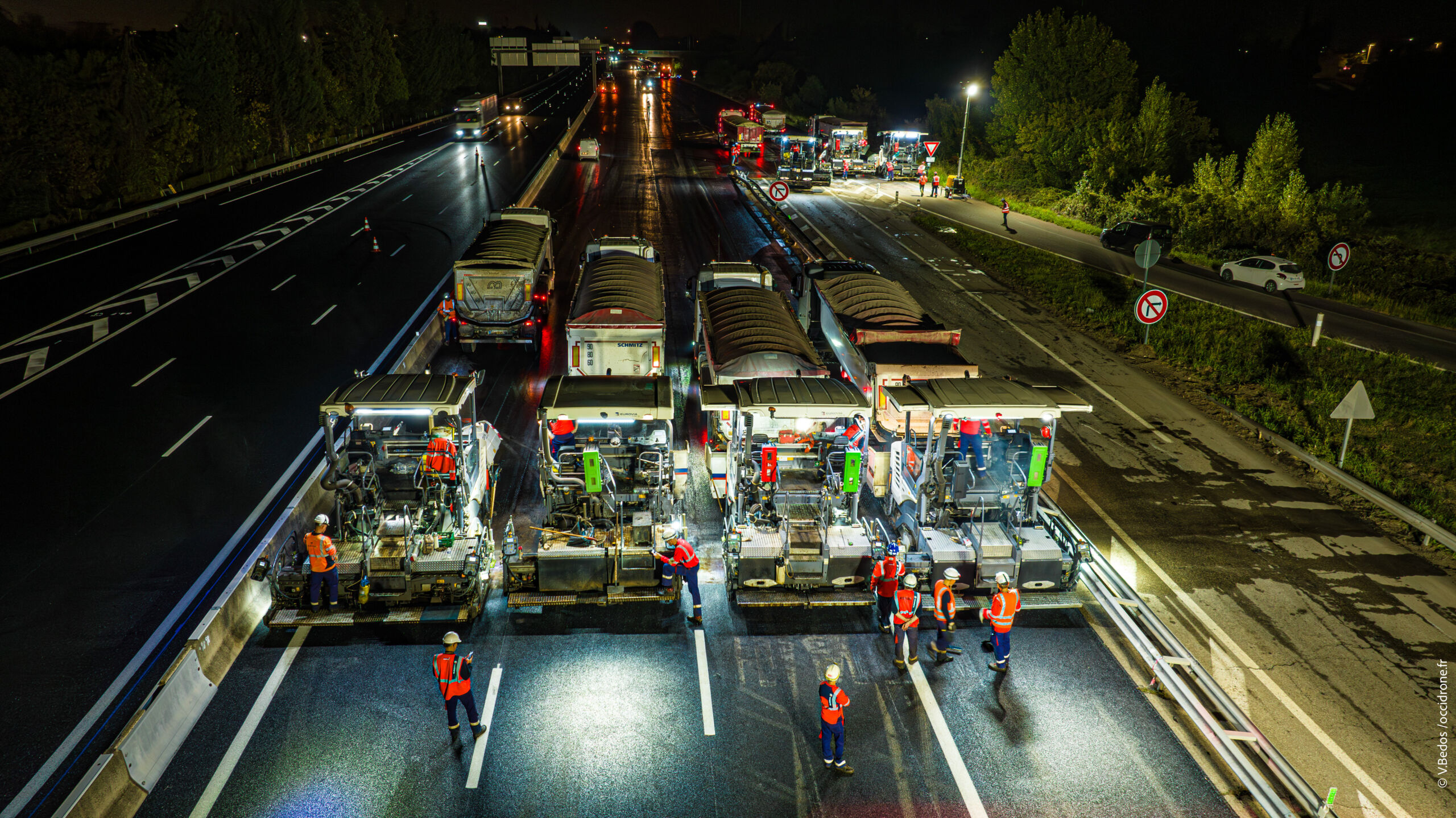 Le secteur Grands Travaux de l’agence Eurovia de Juvignac ainsi que l’agence Eurovia de Nîmes ont réalisé – du 4 septembre au 16 octobre 2023 – cette dernière phase de travaux. Des équipes des agences Eurovia de Juvignac, de Béziers et de Nîmes sont également intervenues afin de mettre en œuvre des enrobés drainants. Le matériel de Robert TP et des agences Eurovia de Baillargues et de Toulon a été utilisé sur ce chantier.