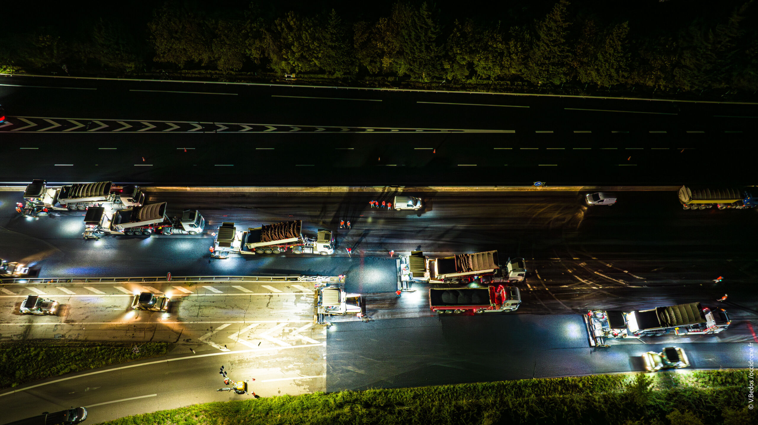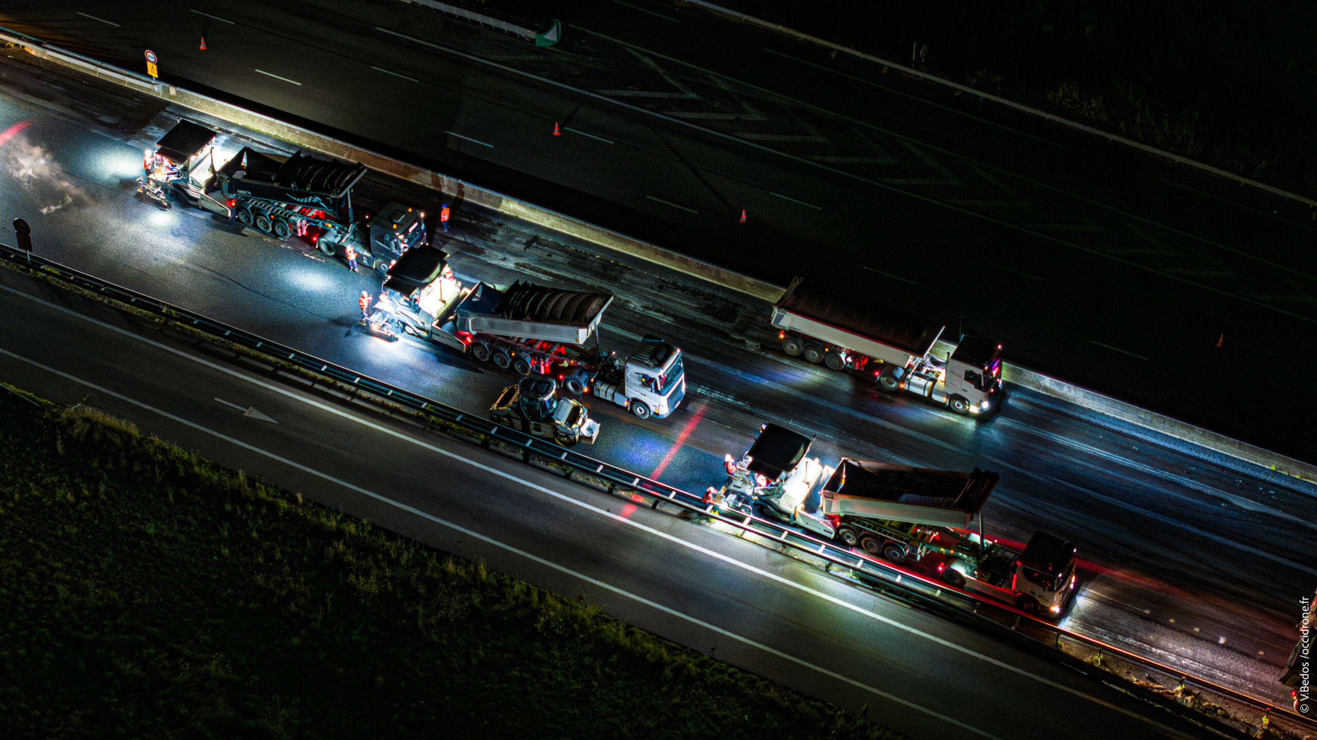 Le programme de travaux a été réparti en 3 phases réalisées à l’automne 2021, au printemps 2022 et à l’automne 2023. Les 2 premières phases ont permis de rénover la couche de liaison et la couche de base de l’ensemble des voies de circulation incluant aussi la bande d’arrêt d’urgence. La dernière phase de travaux a consisté à réaliser la couche de roulement.