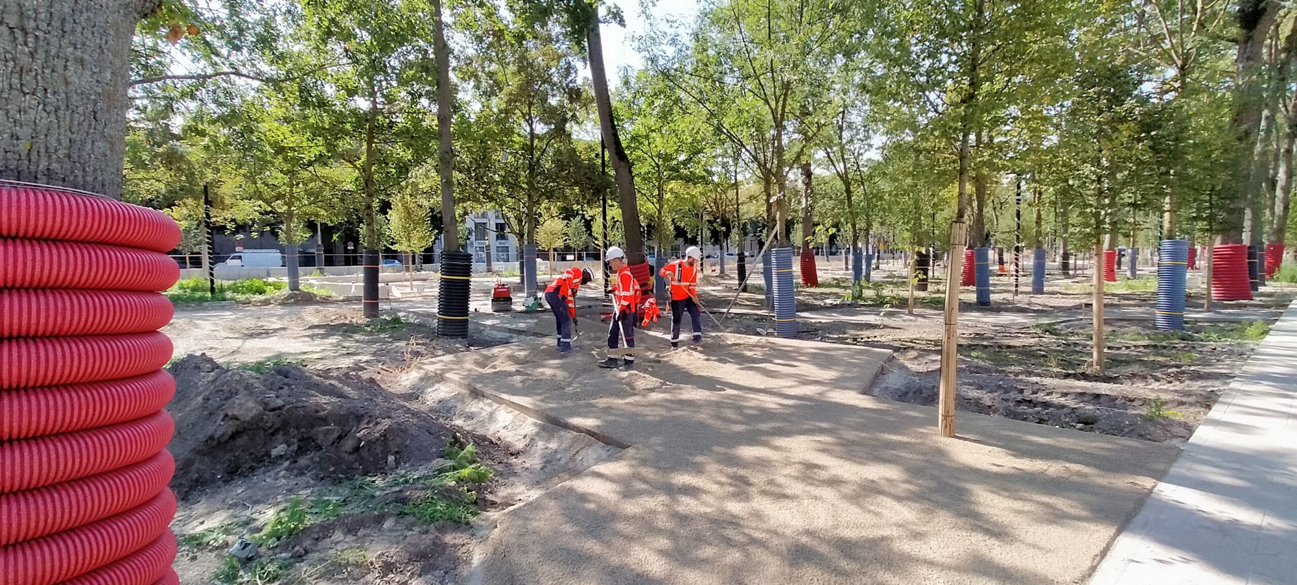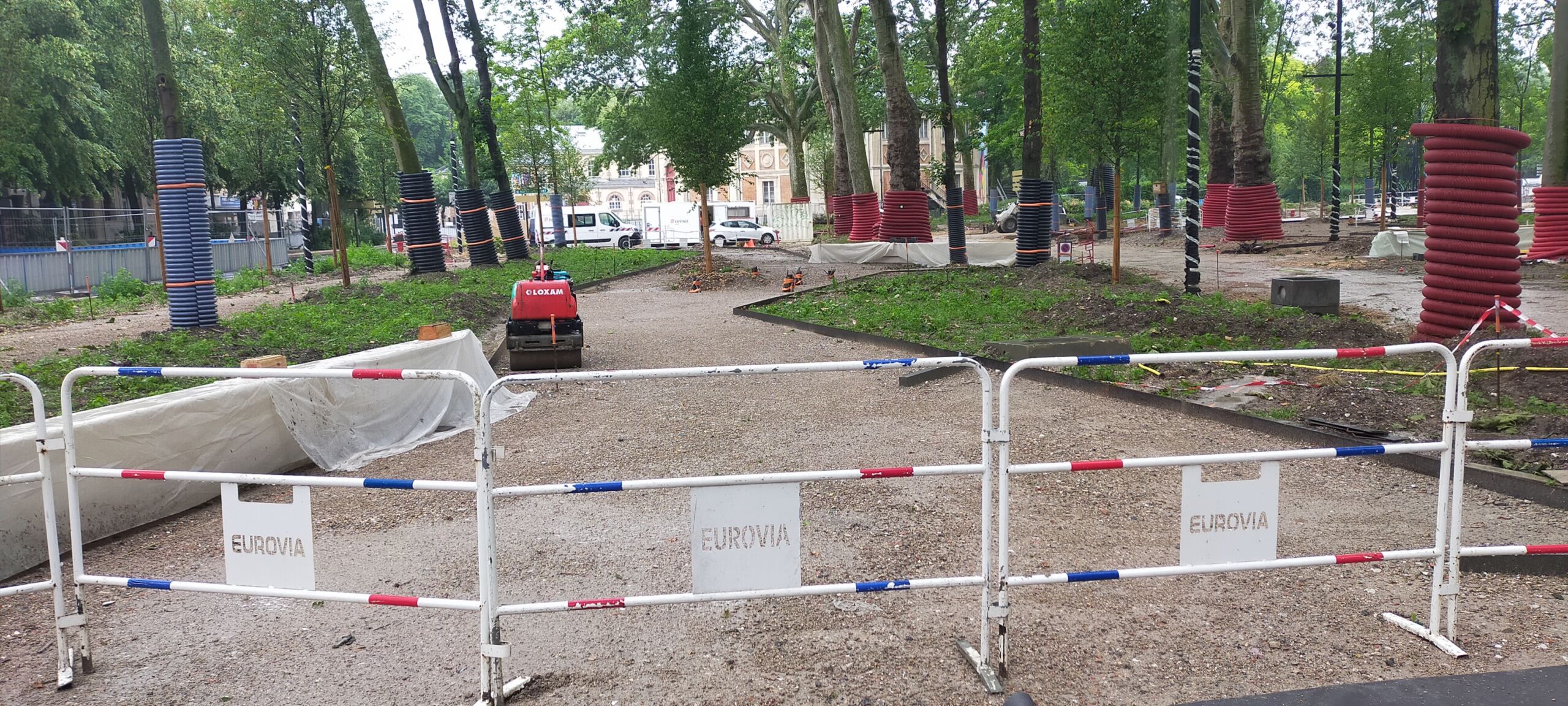 Le groupement composé de l’agence Eurovia de Reims (mandataire) et de Ramery TP a pris part – de septembre 2020 à mars 2022 – aux travaux de terrassements et de voiries et réseaux divers. Des cheminements piétons pavés ont ainsi été créés de même que des pistes cyclables en enrobés et de nouvelles zones végétalisées visant à réduire l’effet d’îlot de chaleur urbain. Les équipes sont intervenues sur un site classé depuis 1932 et contenant de nombreux arbres centenaires. Elles ont ainsi porté une attention particulière à la préservation de l’environnement.