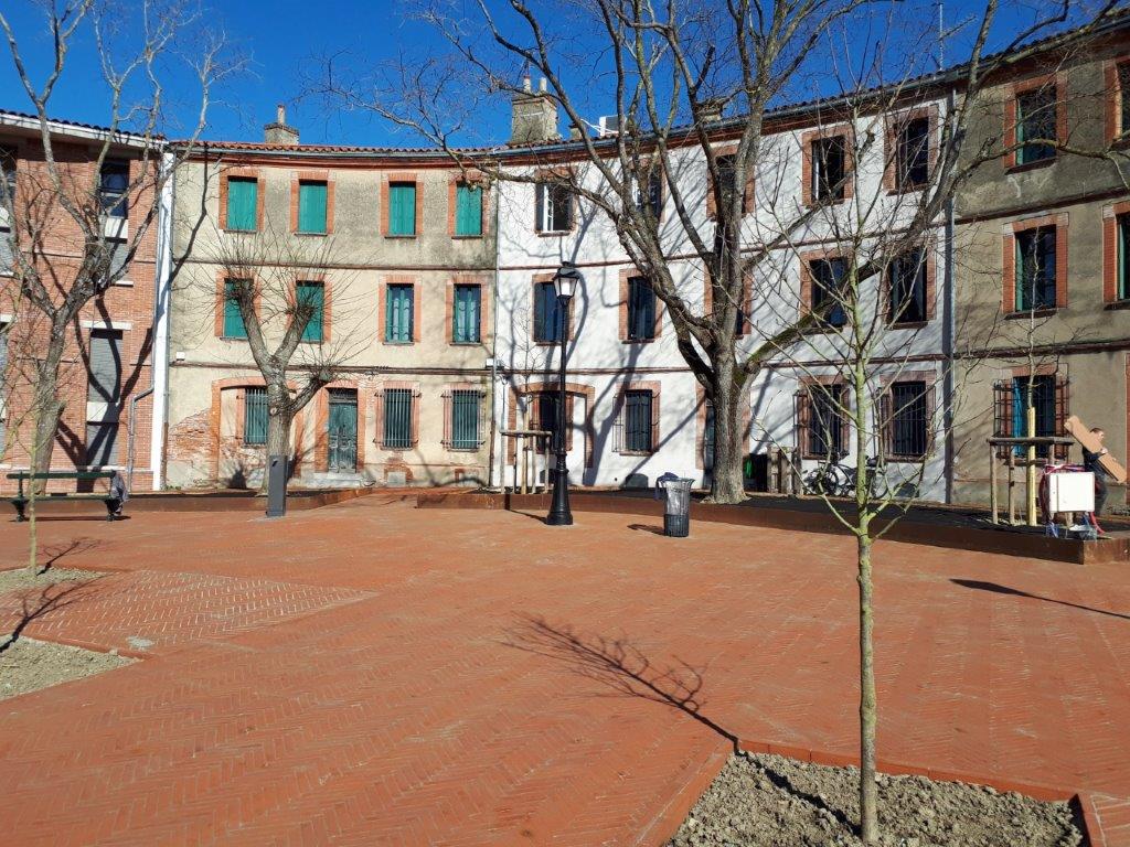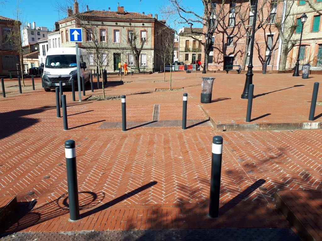 Les équipes de l’agence Eurovia de Toulouse ont donc réalisé des travaux qualitatifs de voiries et de réseaux divers afin de créer une place ronde en briquettes posées sur champs.