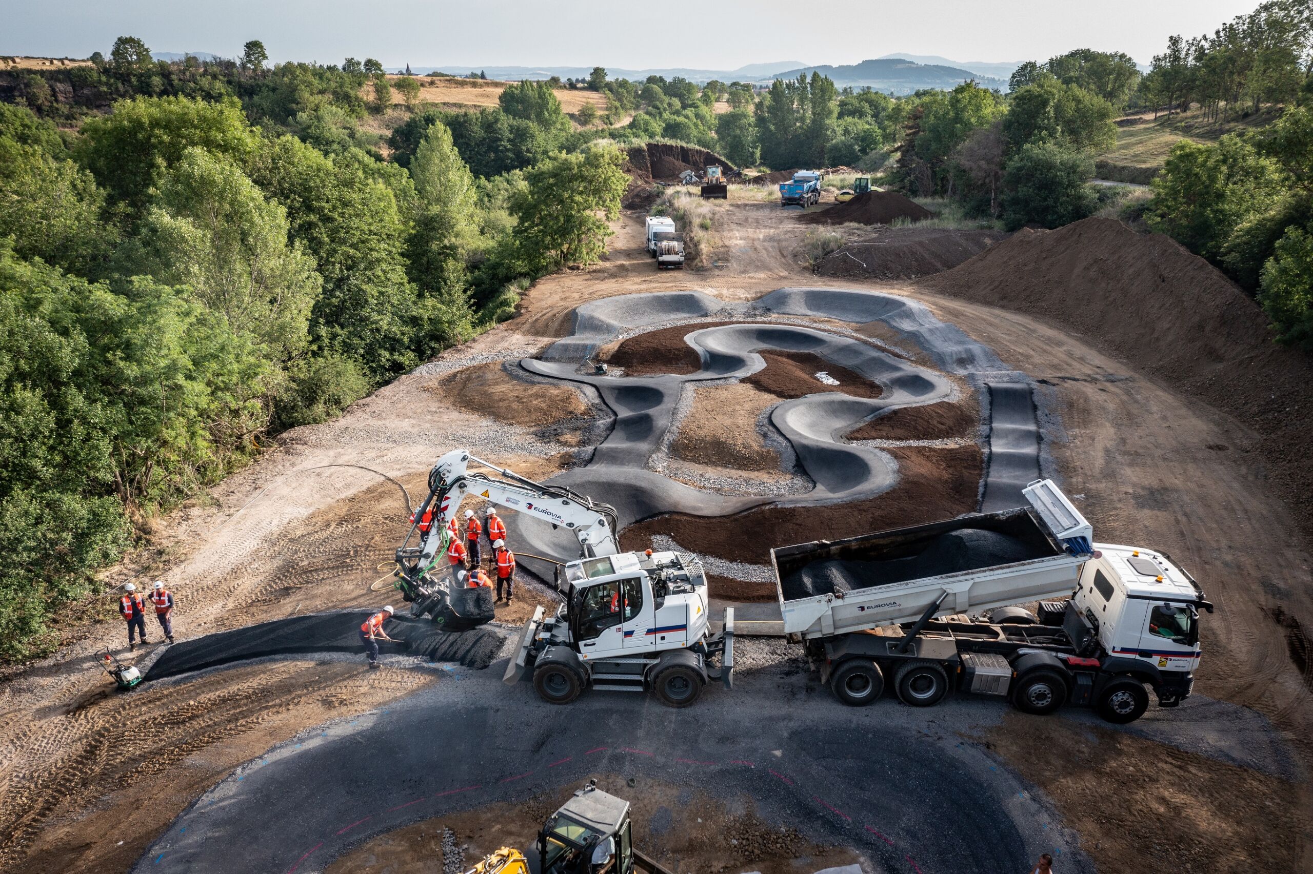 L’agence Eurovia de Le Puy-en-Velay est intervenue – du 20 au 21 juin 2022 – afin de mettre en œuvre les enrobés du nouveau pumptrack construit sur la commune de Chaspuzac (43).