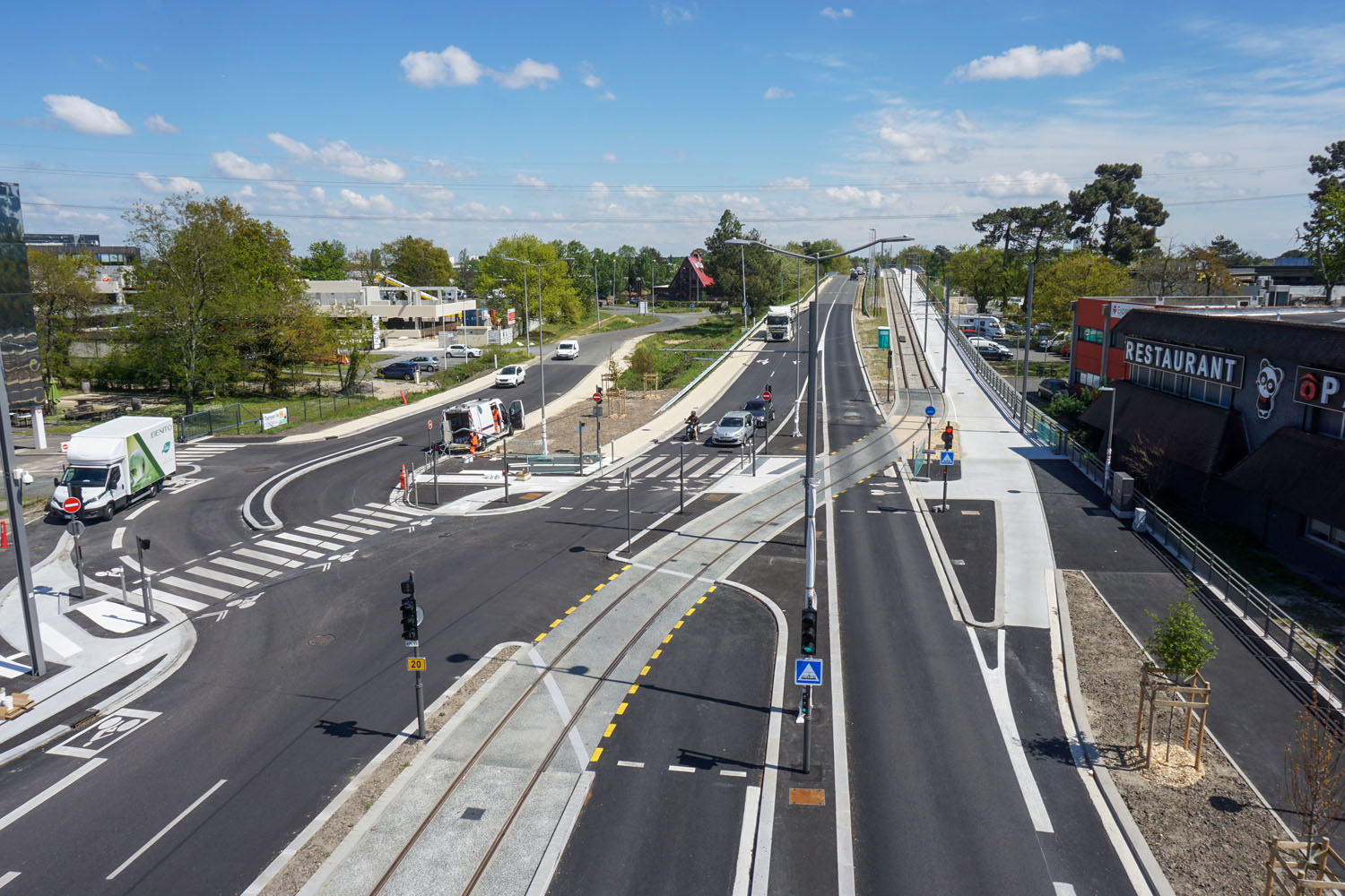 Parmi les 12 lots, 5 ont été remportés par les entreprises du groupe VINCI. Jusqu’à 70 collaborateurs de Moter et de l’agence Eurovia de Gironde ont été présents chaque jour sur chantier. Situé sur une zone urbaine très dense, à proximité de la zone commerciale Mérignac Soleil et sur l’emprise de 2 des 4 plus gros carrefours de la métropole, le phasage de ce chantier a été adapté afin de tenir compte de la coactivité, de limiter les nuisances des travaux et l’impact sur les riverains en aménageant des déviations et des cheminements piétons.