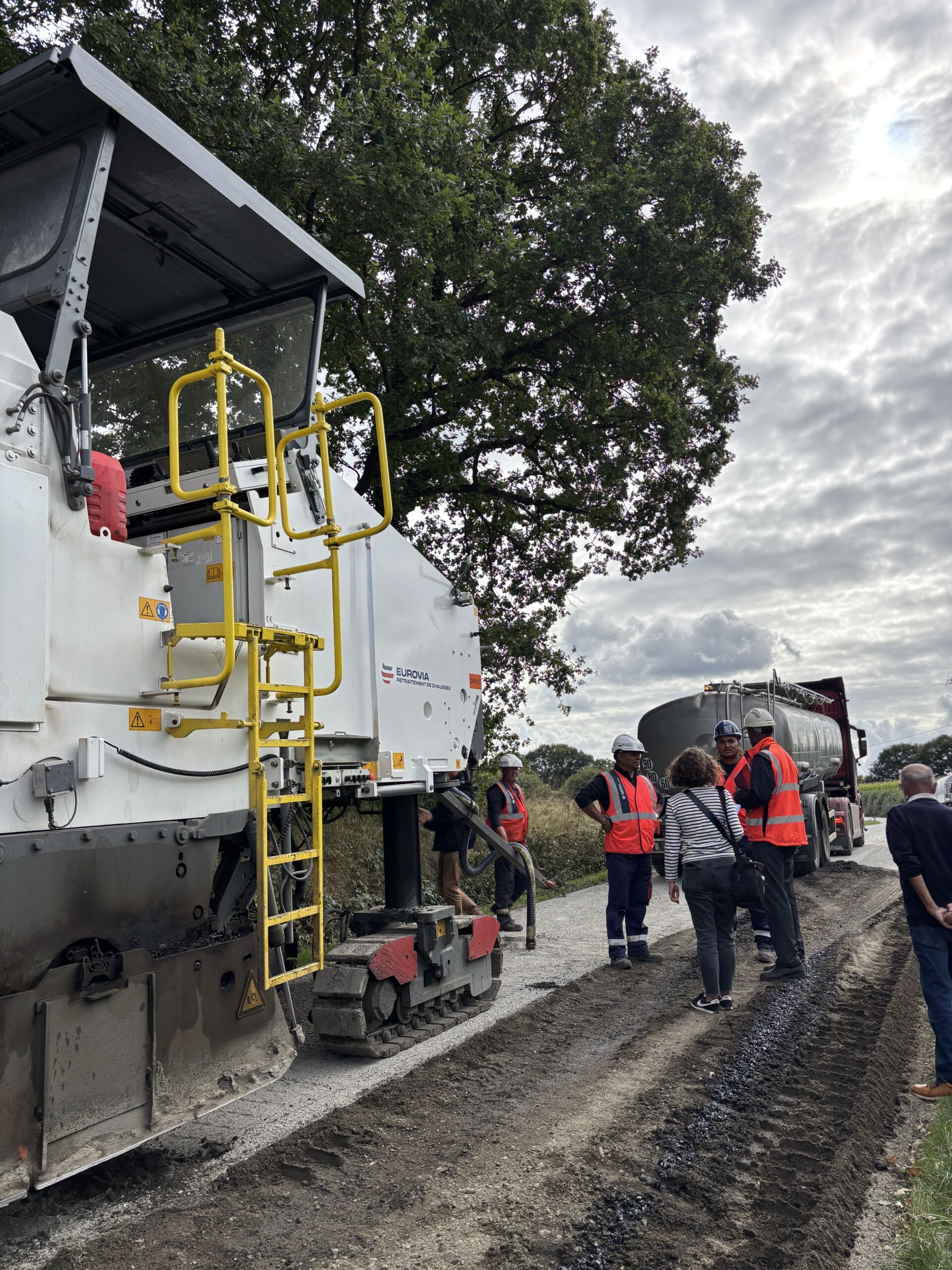 La méthode repose sur un procédé simple et durable : raboter la chaussée existante sur 4 cm, y ajouter une émulsion, puis réutiliser immédiatement ce matériau en le mélangeant et en le nivelant directement sur place, avant d’appliquer un nouveau revêtement. Ce procédé permet de recycler les matériaux in situ, réduisant ainsi les besoins en transport, la consommation d’énergie et l’utilisation de ressources naturelles.