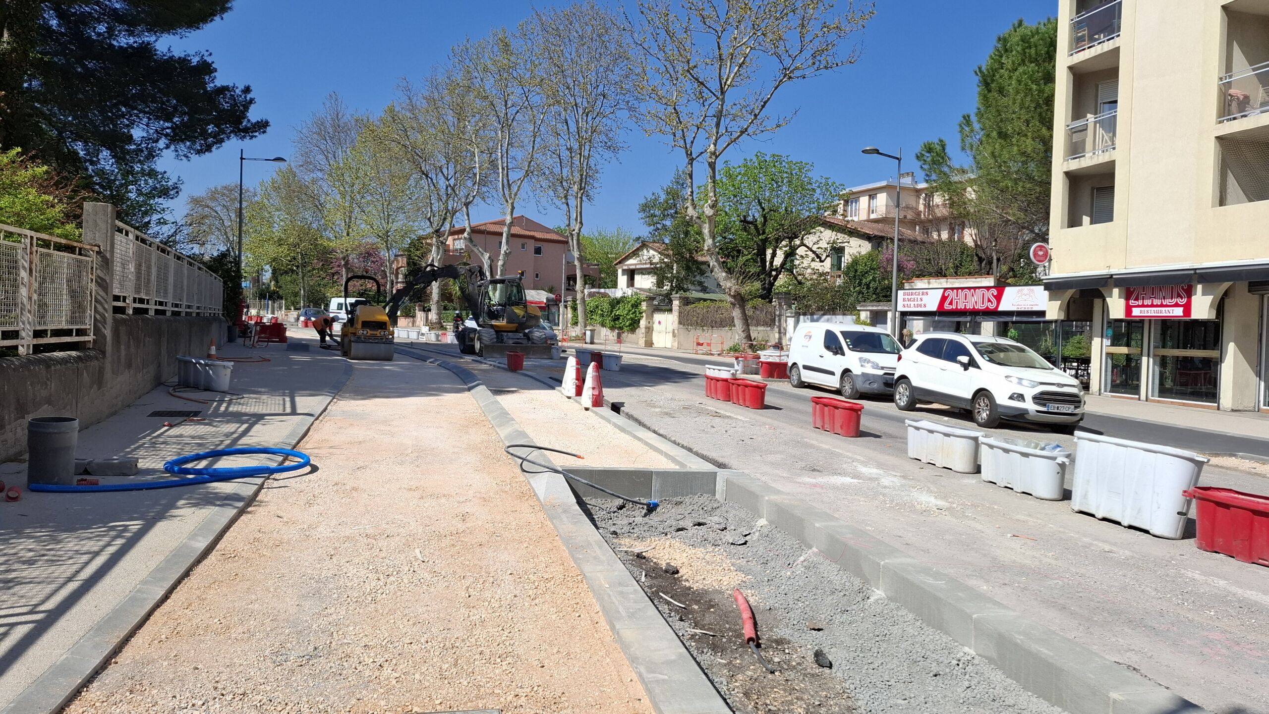 Un important travail de phasage a été réalisé pour maintenir la circulation automobile et des bus en sens unique, tout en garantissant la continuité des cheminements piétons, cyclables et la cohabitation avec le réseau de tramway. La livraison de l’opération est prévue pour le 1er décembre 2025.