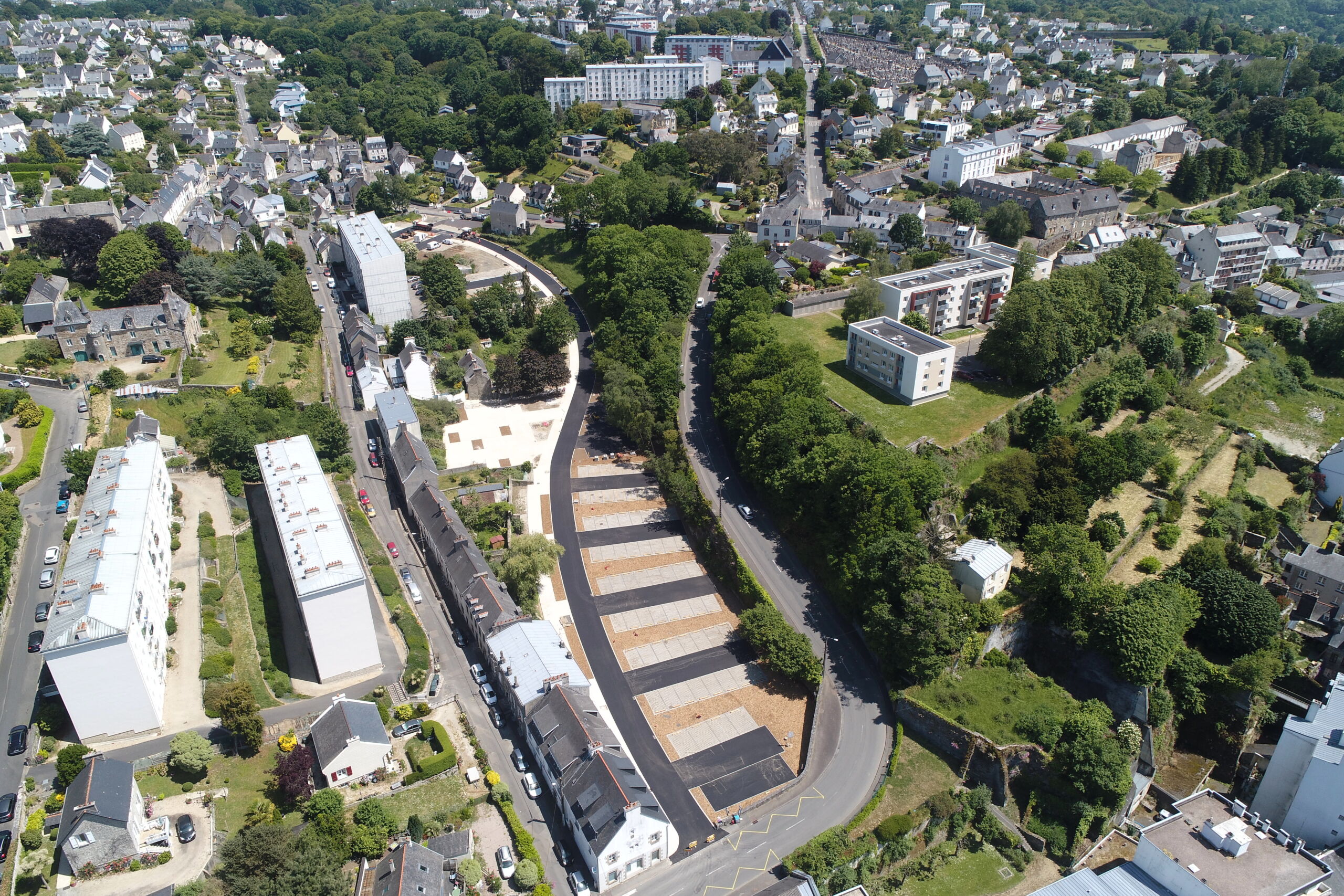 À Morlaix (Finistère), un projet visant à réaménager un parking à proximité immédiate du centre-ville en compensation des pertes de places de stationnement estimées dans le cadre de la prochaine…