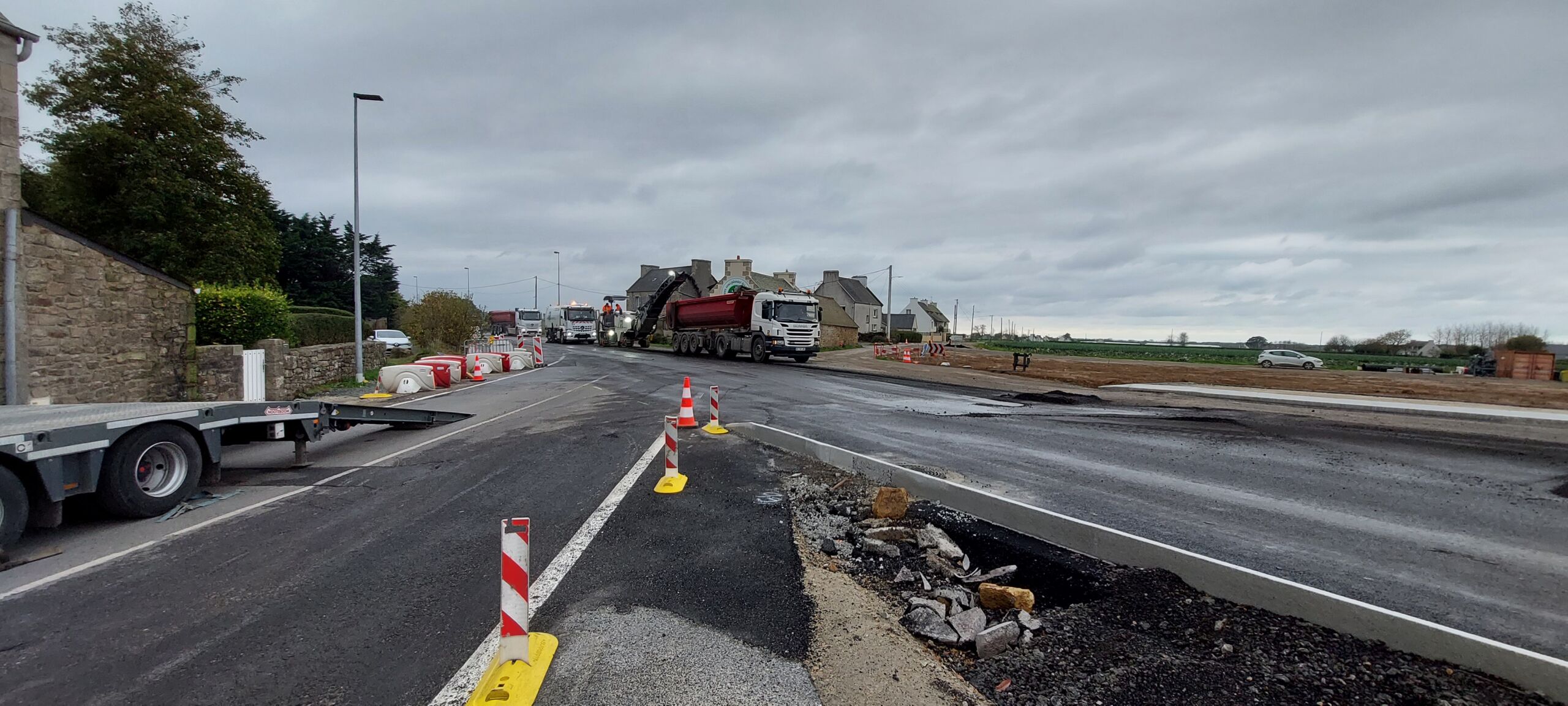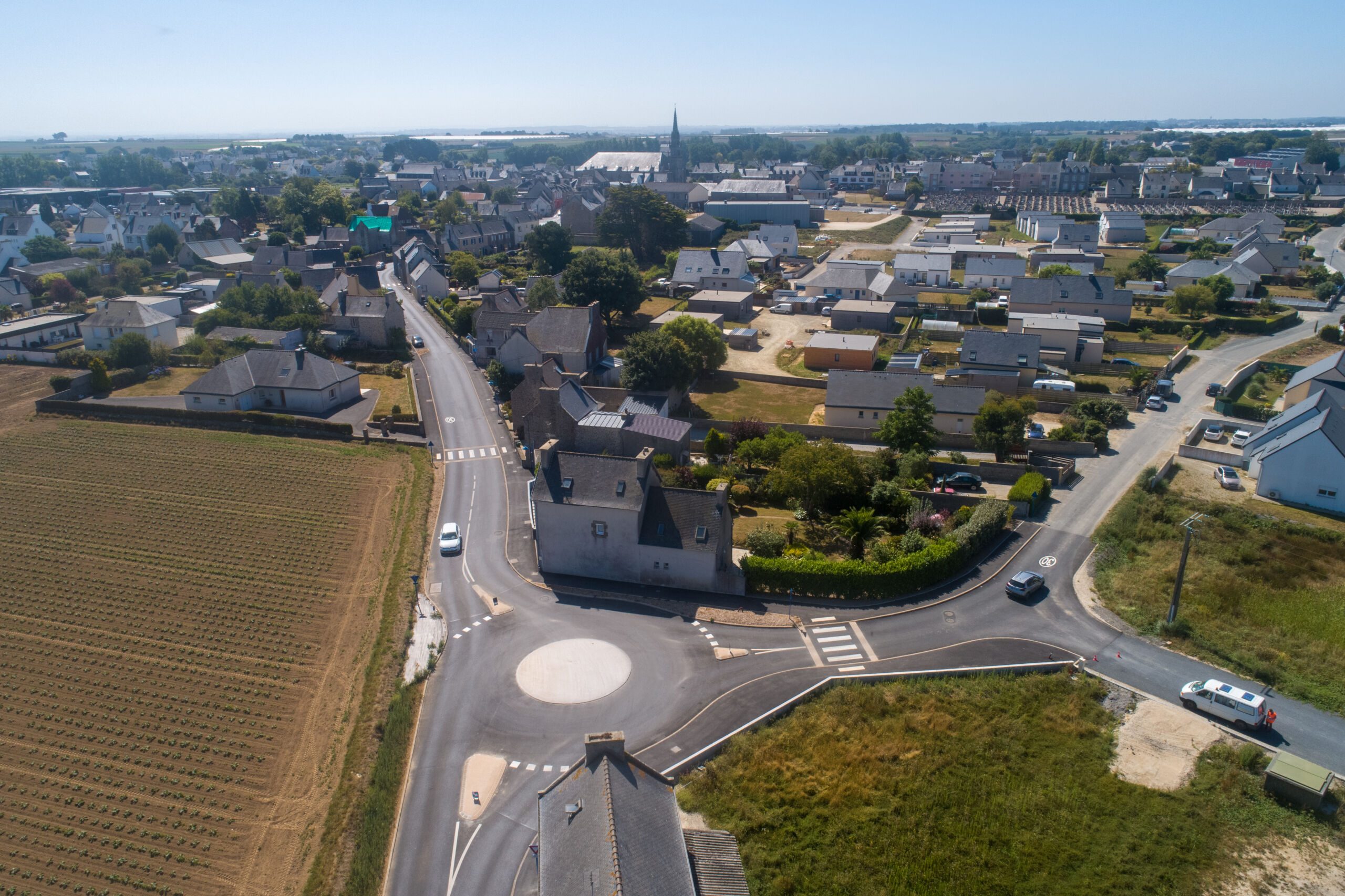 L’agence Eurovia de Morlaix est intervenue – d’octobre 2021 à janvier 2022 – afin de créer un giratoire à 4 branches, entouré d’une piste cyclable, ainsi qu’une aire de covoiturage…