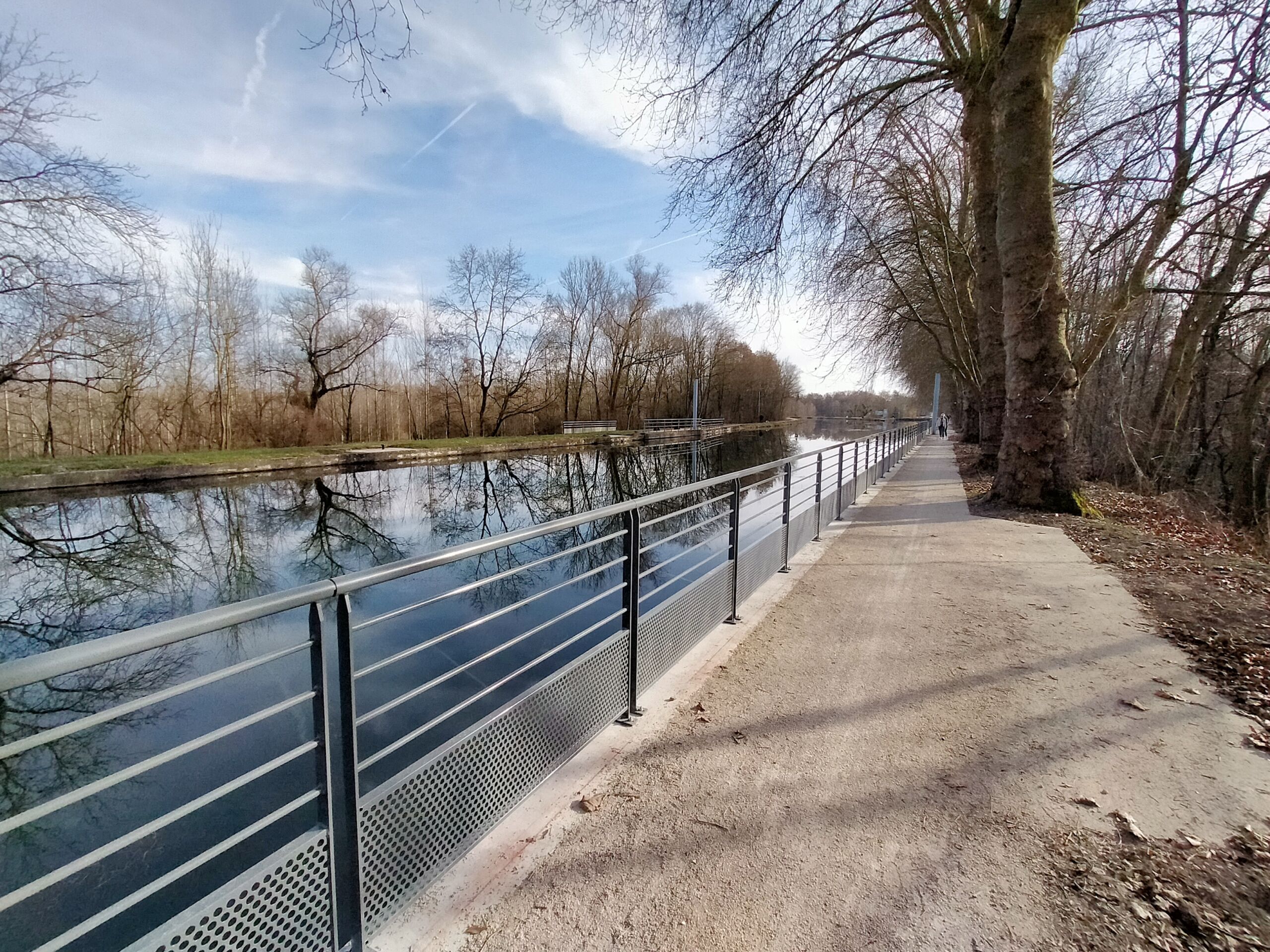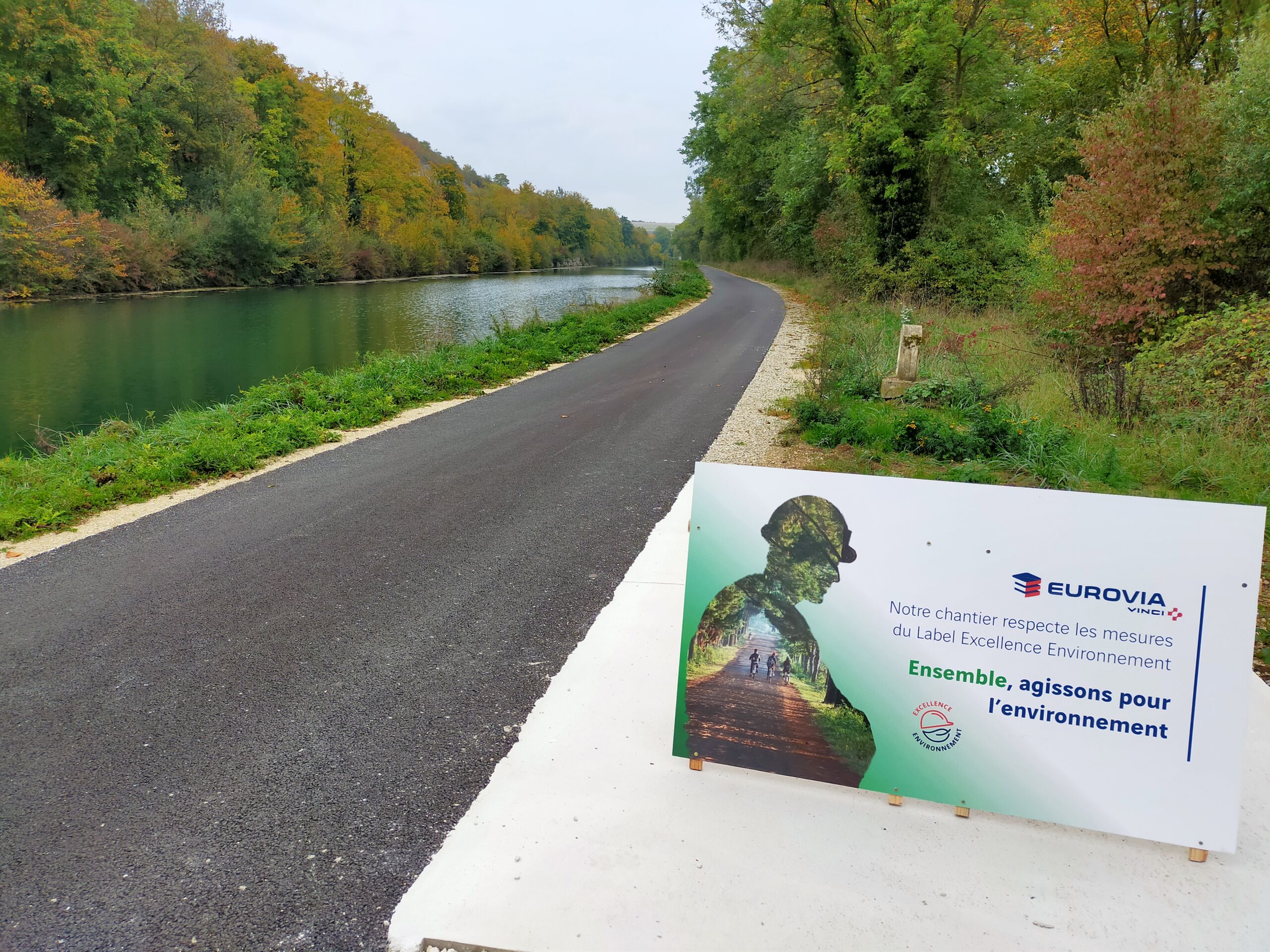 Dans le cadre du plan départemental des véloroutes et voies vertes piloté par le département de la Marne, des travaux ont été menés afin de créer une nouvelle section de 24 km reliant Moncetz-Longevas à Vitry-le-François (51). Traversant 12 communes, ce nouvel aménagement assure la continuité de la véloroute 52, un itinéraire de 90 km qui vise à relier Dormans au Lac du Der en longeant le canal latéral de la Marne. Itinéraire d’intérêt national, l’objectif – à terme – de la véloroute 52 sera de relier Paris à Strasbourg en suivant le Canal de la Marne au Rhin.