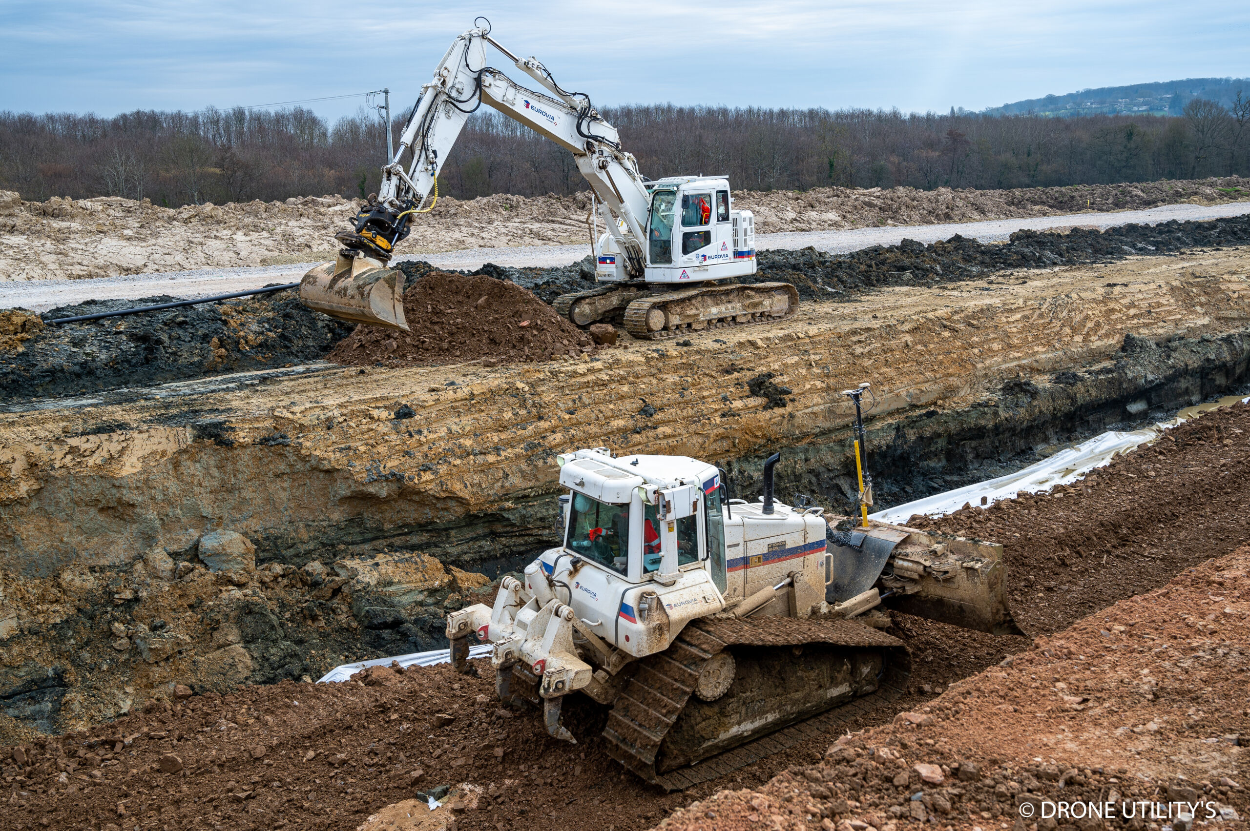 Eurovia a déjà pu mener les travaux de terrassements, d’assainissements d’eaux potables et d’eaux usées, de réseaux divers et de confortement hydraulique.