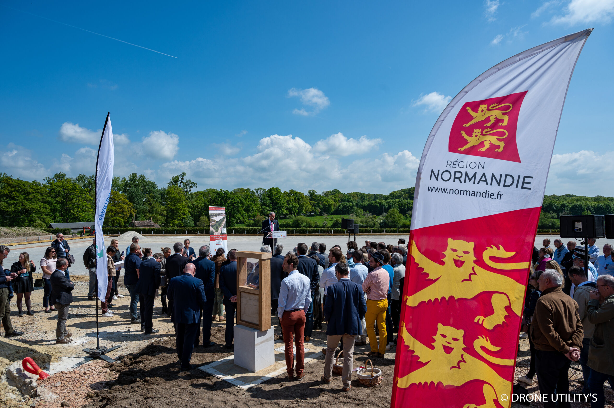 La première pierre du Futur Pôle International de Sports Equestres du Haras du Pin a été posée le vendredi 6 mai 2022 en présence de Christophe De Balorre, Président du Département de l’Orne, d’Hervé Morin, Président de la Région Normandie et de Pierre-André Durand, préfet de la Région.