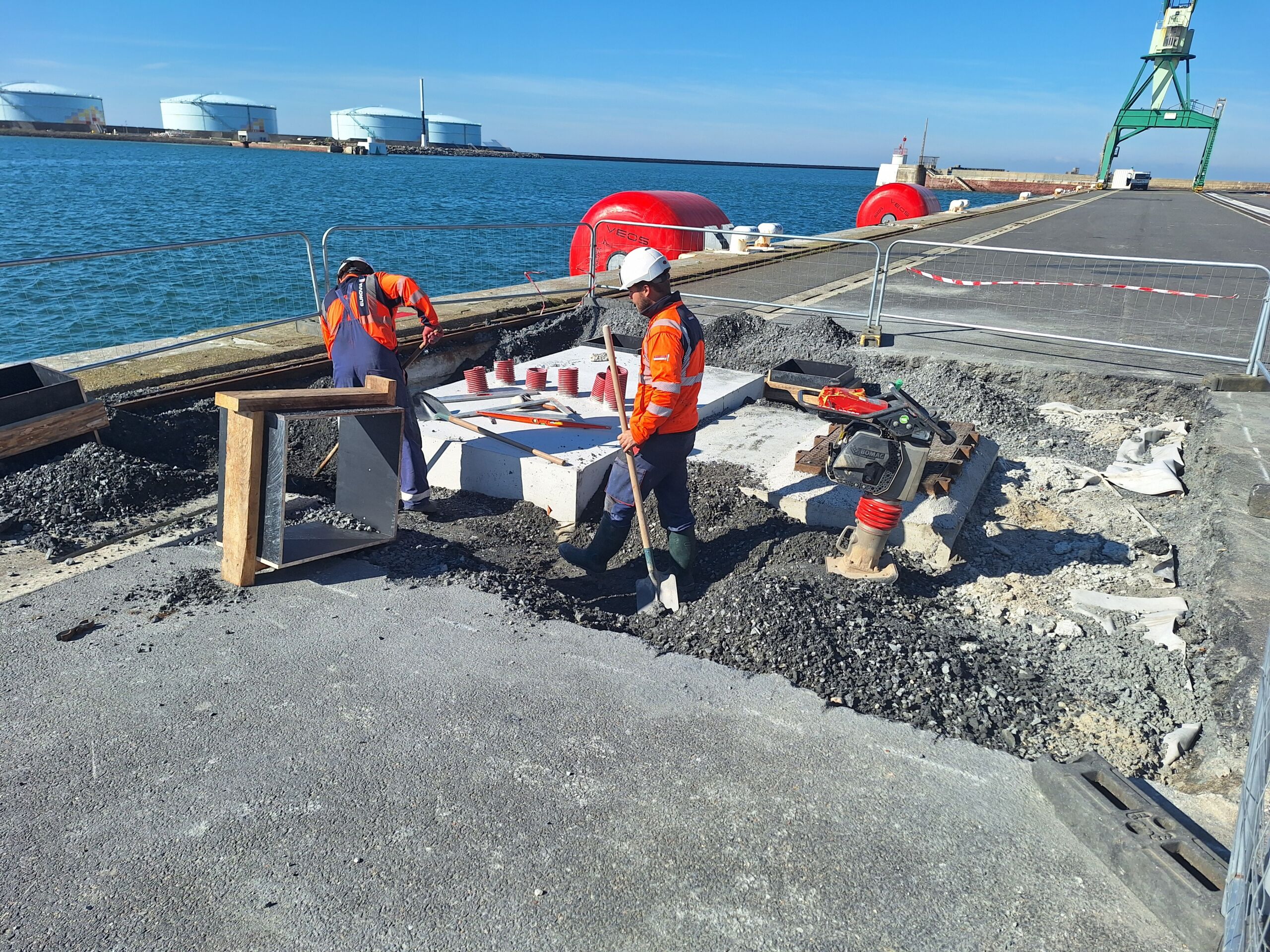 Ce chantier très technique et exigeant est réalisé sous exploitation du quai par les navires et nécessite une coordination précise pour la réalisation de travaux en zone d’accès restreinte.