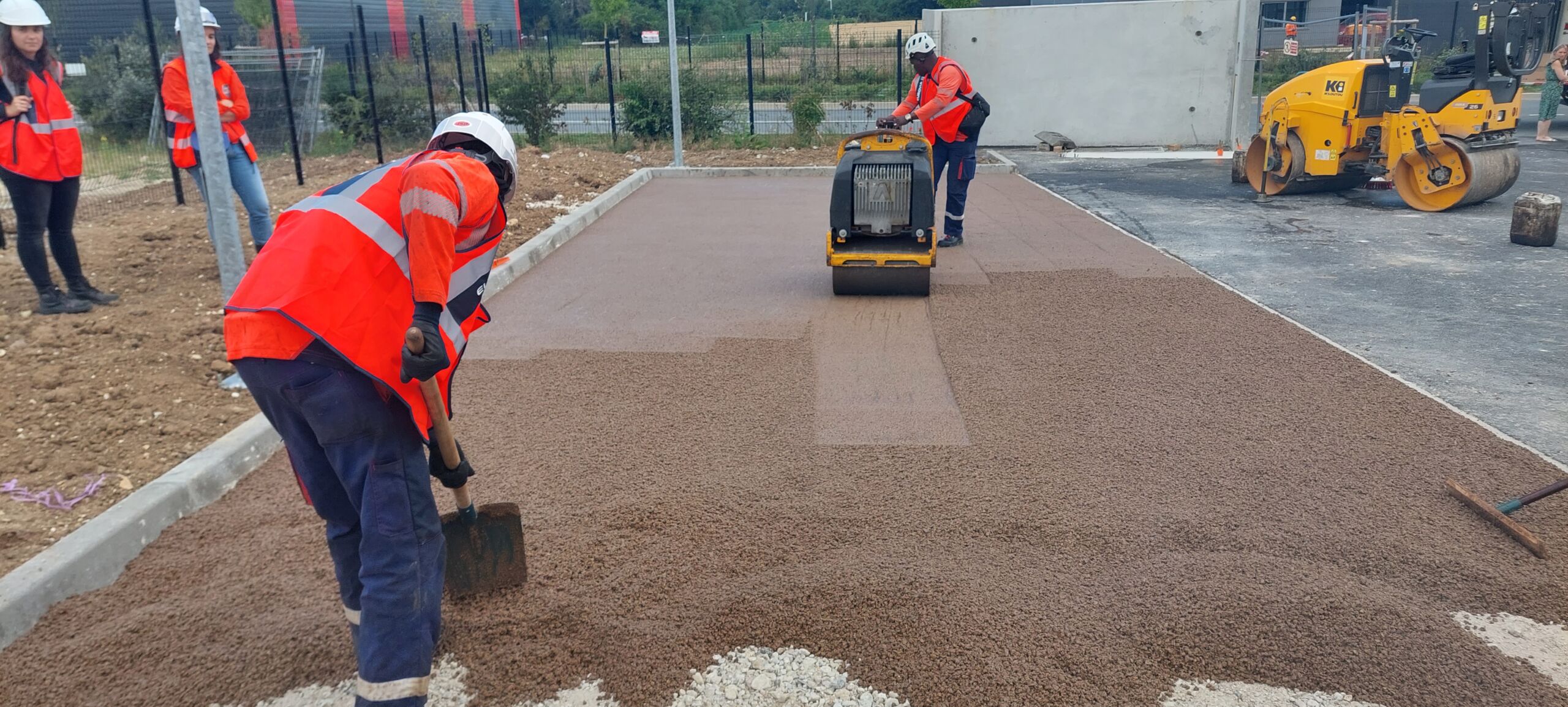 Dans le cadre de la construction d’une nouvelle agence VINCI Construction Terrassement en Île-de-France, l’agence Eurovia de Saint-Gratien a réalisé les aménagements extérieurs. Afin d’ancrer ce projet dans une démarche environnementale et de mettre en avant l’expertise d’Eurovia, VINCI Construction Terrassement a souhaité utiliser le liant végétal SEQUOIA® pour la réalisation des couches de roulement des parkings.