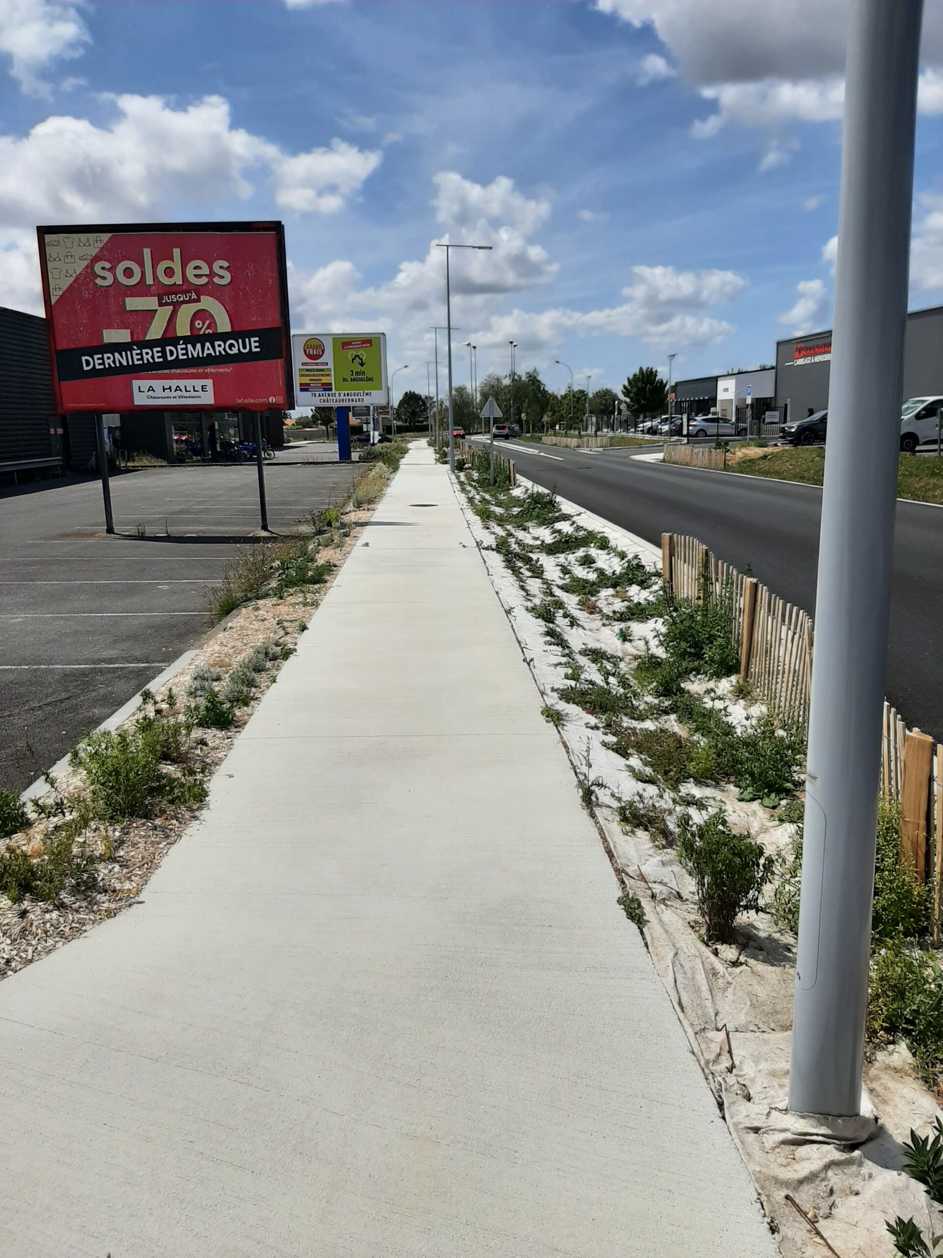 Située sur la commune de Châteaubernard (17), la zone d’activités économiques (ZAE) du Fief du Roy a fait l’objet d’une requalification, réalisée de janvier à juillet 2023. Les travaux menés par l’agence Eurovia d’Angoulême ont inclus l’amélioration du réseau des eaux pluviales, la rénovation des chaussées existantes et surtout la création de cheminements piétonniers. Implantée depuis 30 ans, la ZAE nécessitait une meilleure lisibilité de ses enseignes afin d’être plus attractive. La circulation a été repensée afin d’y intégrer les déplacements des piétons et de vélos sur la zone. Les nouveaux aménagements concourent également à une meilleure gestion des eaux de pluie.