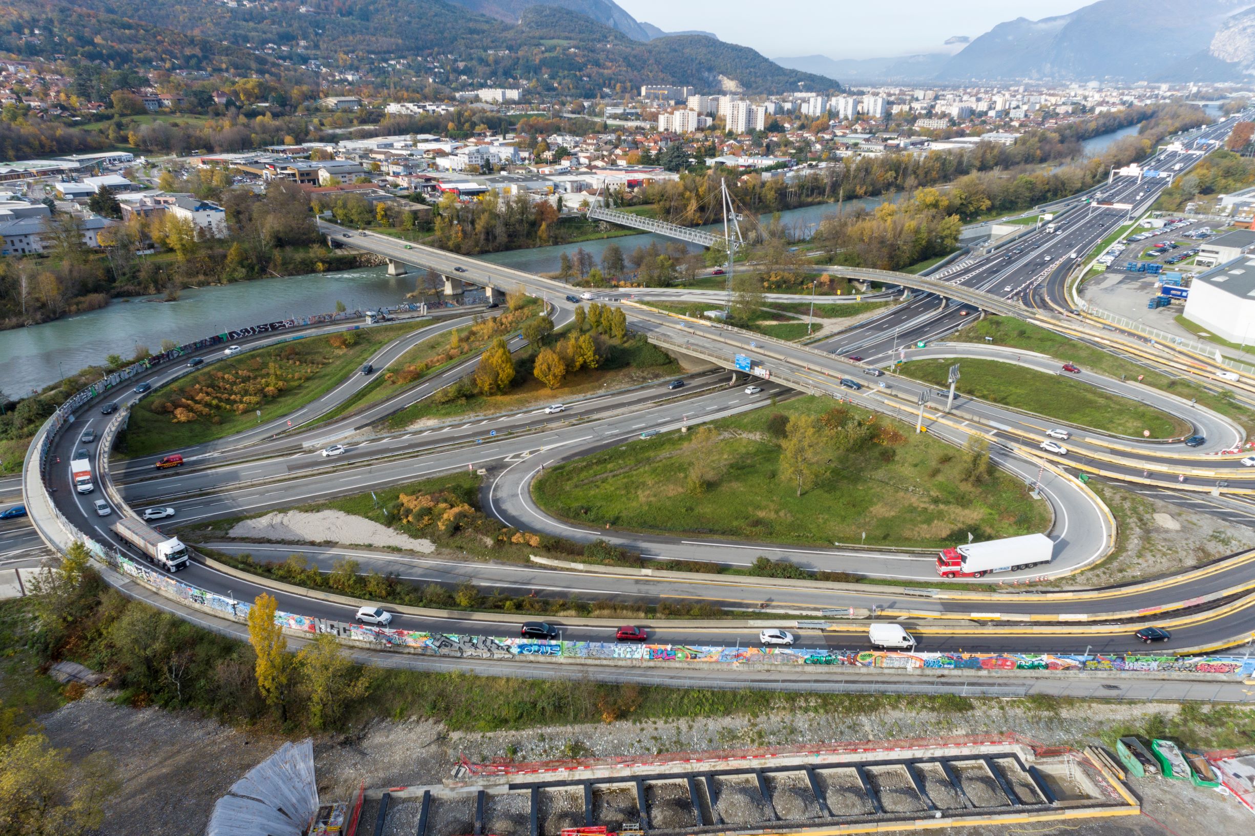 Un vaste programme de travaux est en cours, depuis 2021, afin de repenser intégralement la circulation de cet échangeur pour fluidifier le trafic et assurer la sécurité sur ce nœud routier stratégique. Ce projet s’articule autour de 4 interventions à savoir l’élargissement de la bretelle d’accès A480 Nord – N87 à 2 voies, la construction d’une tranchée couverte accueillant la N87 sur 290 mètres en souterrain, la création de collectrices pour relier les multiples voies de la rocade Sud et une passerelle au-dessus de l’A480 contenant un itinéraire réservé uniquement aux mobilités douces.