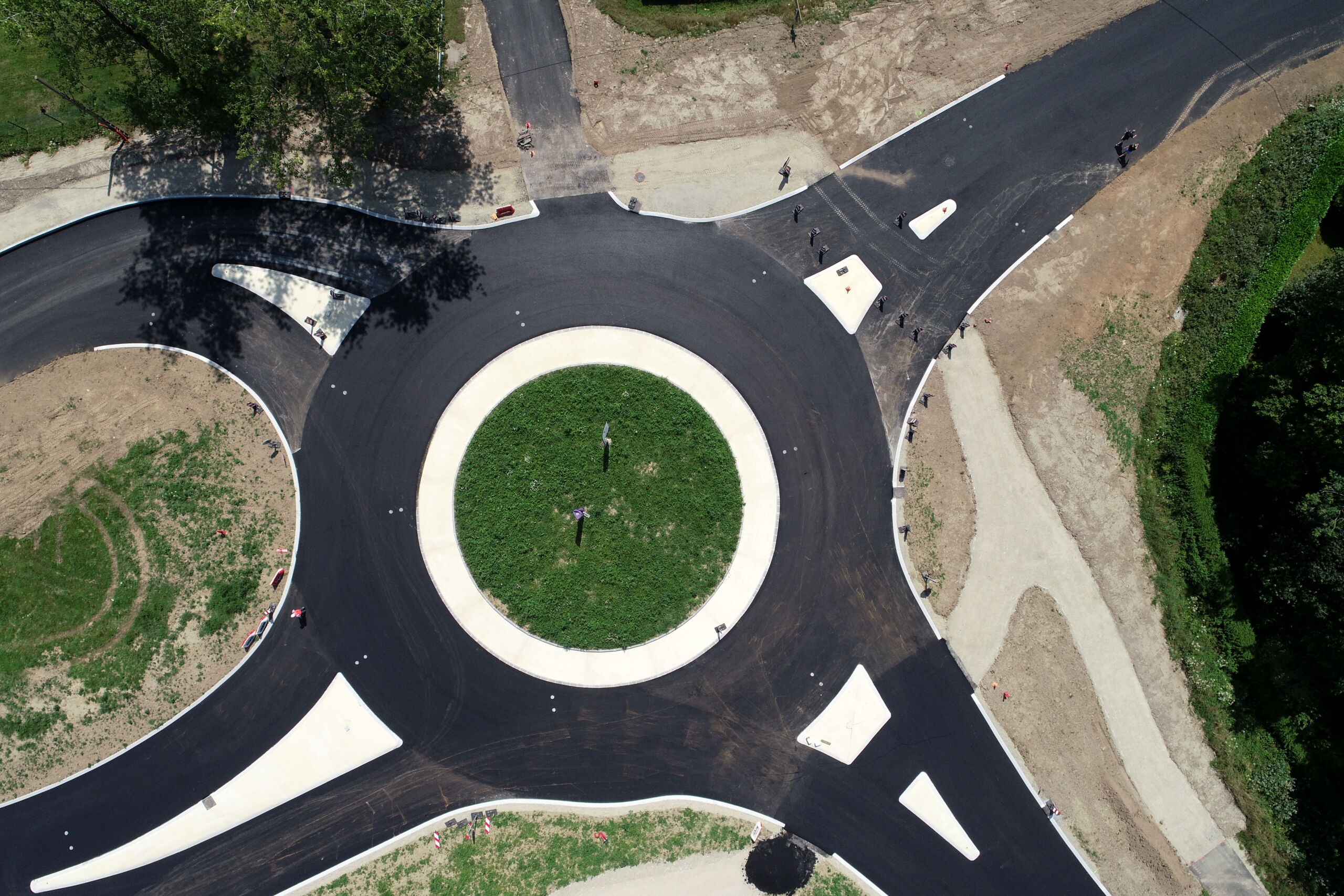 Afin de maintenir la circulation routière sur le carrefour, et notamment de permettre aux commerçants et à leurs clients d’accéder à la zone d’activités, la chaussée a été élargie et des voies provisoires de circulation ont été créées. La communication avec les riverains a été facilitée grâce à la création d’une page Infochantier, accessible à tous par le biais d’un QR code affiché sur les panneaux du chantier. Ce site a permis de recenser les étapes clés du chantier, le planning de l’opération, l’état d’avancement des travaux et de réaliser des points réguliers sur la circulation aux abords du chantier.