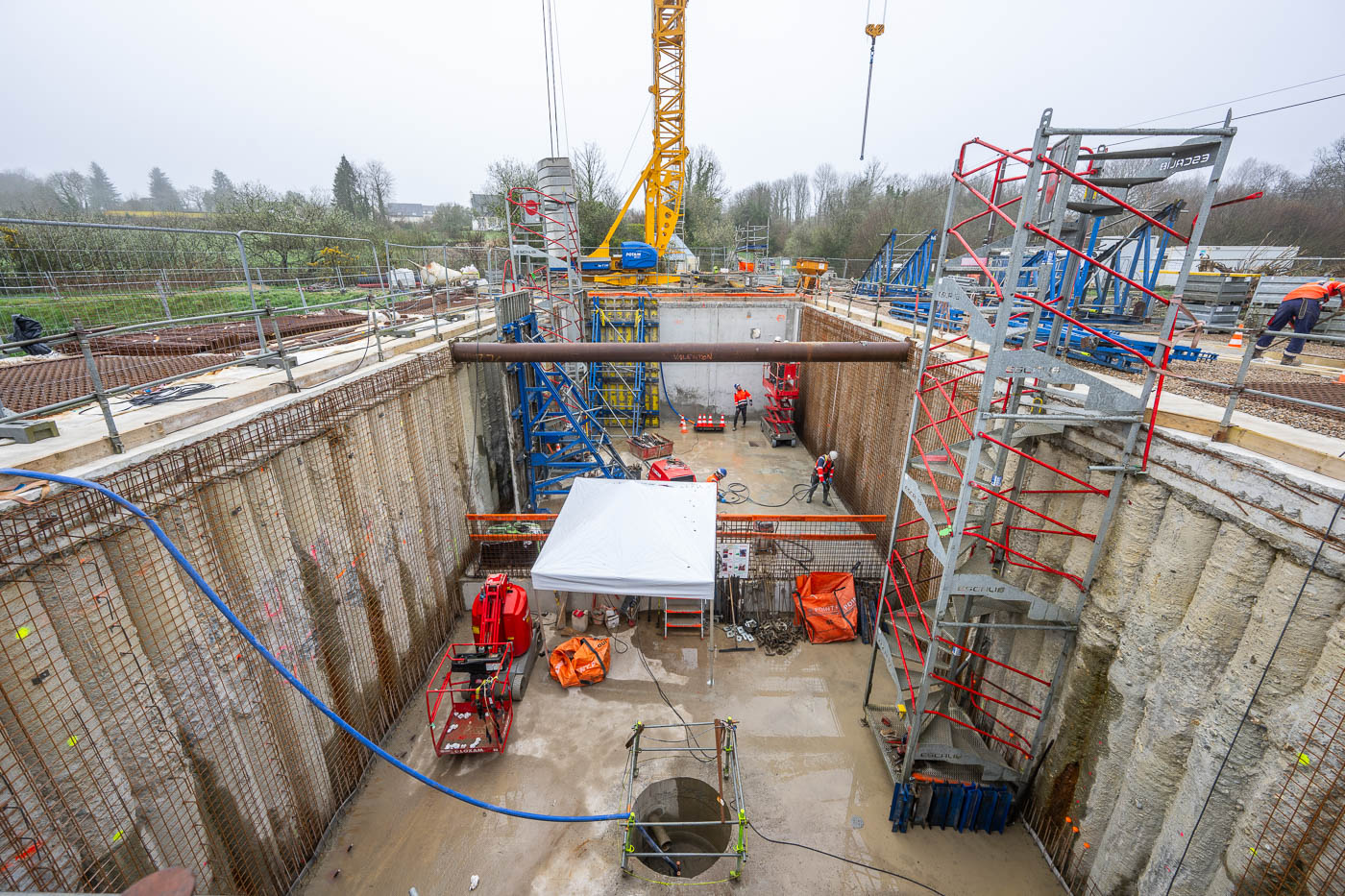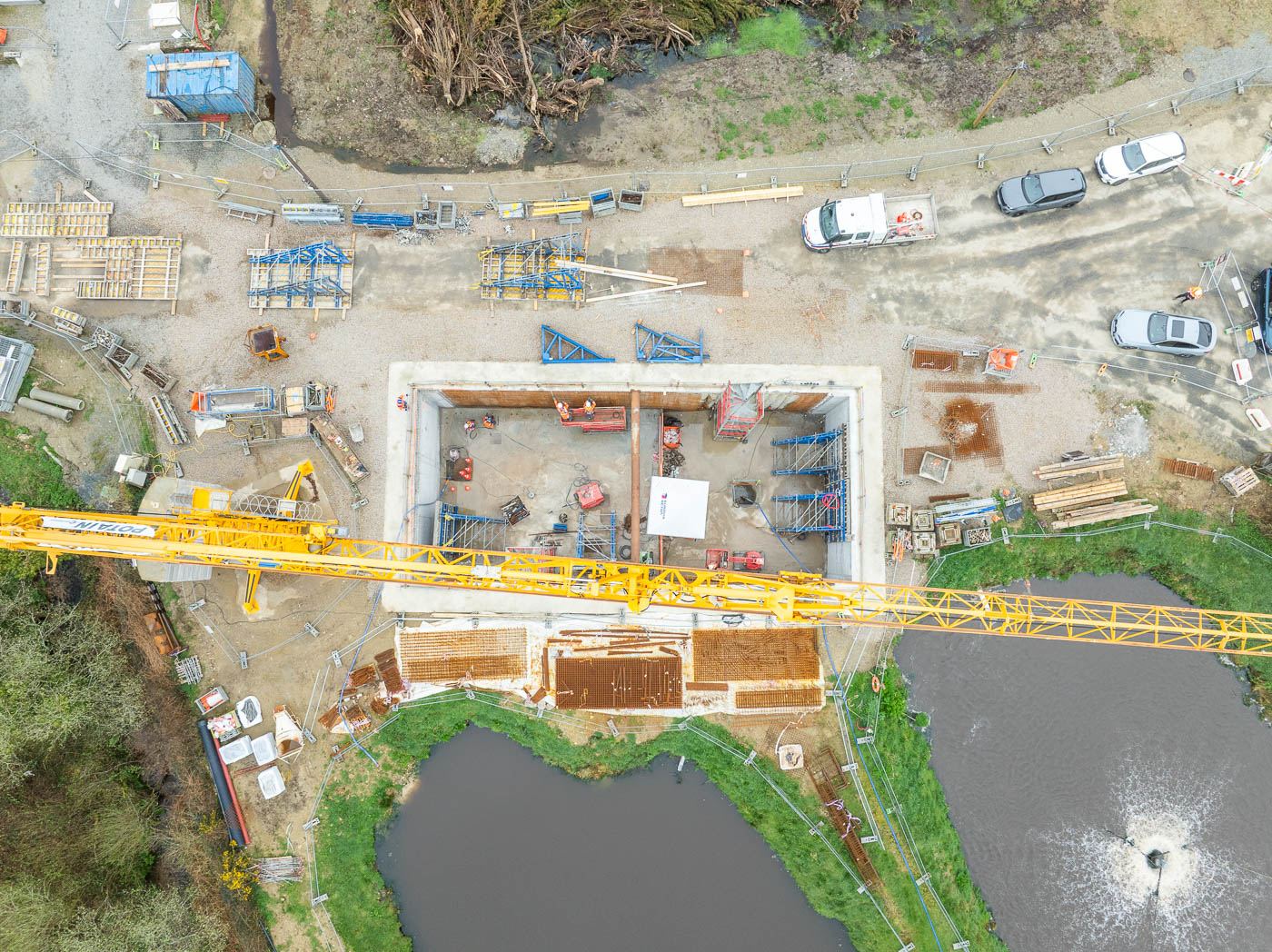 L’ouvrage de génie civil de la file eau se terminant, les équipes GC3E cèdent leur place aux équipes de l’agence Eurovia de Morlaix qui vont réaliser la pose des réseaux extérieurs et les aménagements périphériques. La mise en service de la file eau sera réalisée à l’automne 2024 et permettra de passer à la construction de la file boue.