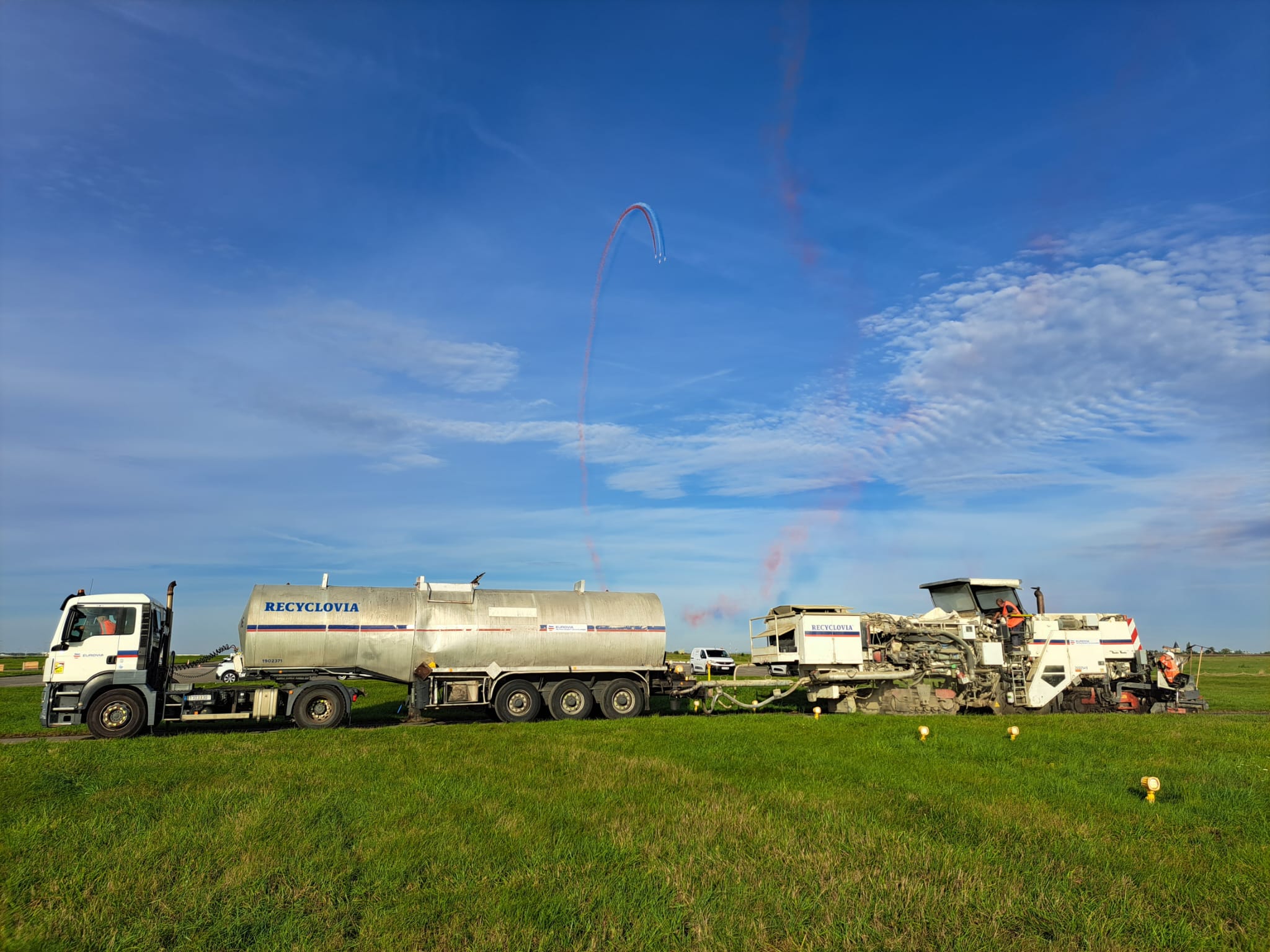 Du 19 au 20 septembre 2023, l’atelier de retraitement en place à froid Recyclovia® et les équipes de l’agence Retraitement de Chaussée ont cotoyé de près les avions de l’aéroport Paris-Charles-de-Gaulle (Roissy) ainsi que ceux de la Patrouille de France et se déplacent sur tout le territoire afin de rénover les chaussées soumises à de fortes sollicitations mécaniques.
