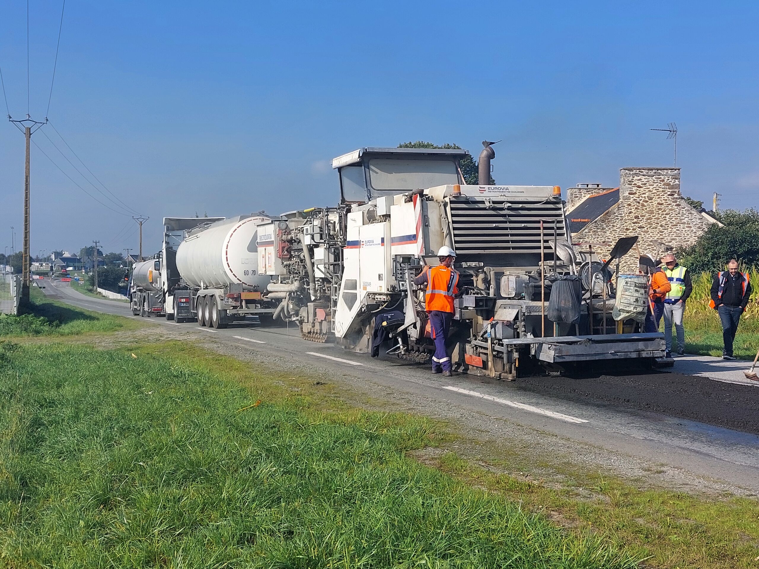 Située dans le département des Côtes d’Armor (22), la route départementale 768 relie Plancoët à Dinard en passant par la commune de Créhen. Plus de 4 500 véhicules, dont 250 poids lourds, empruntent quotidiennement cet axe. Afin d’entretenir le réseau routier, l’agence Eurovia de Saint-Brieuc intervient, de mi-septembre à mi-octobre 2024, pour le compte du Département des Côtes d’Armor, afin de réhabiliter une portion de cette route départementale en sortie de Créhen jusqu’au rond-point de « La Ville-es-Comte », dans le sens Plancoët-Dinard.