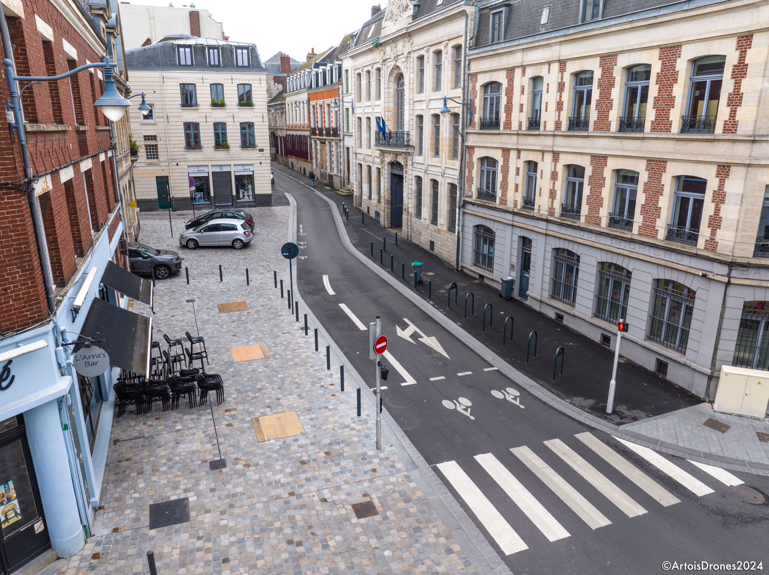 Située au cœur de la préfecture du Pas-de-Calais et de son centre commerçant, à proximité de la place des Héros, cette rue qui mène au beffroi (inscrit au patrimoine mondial de l’UNESCO) a été rénovée en collaboration avec les architectes des Bâtiments de France. Les équipes ont aménagé la chaussée avec des pavés en grès belge, tout en veillant à une harmonisation des niveaux : trottoirs, piste cyclable, voirie et place de stationnements.