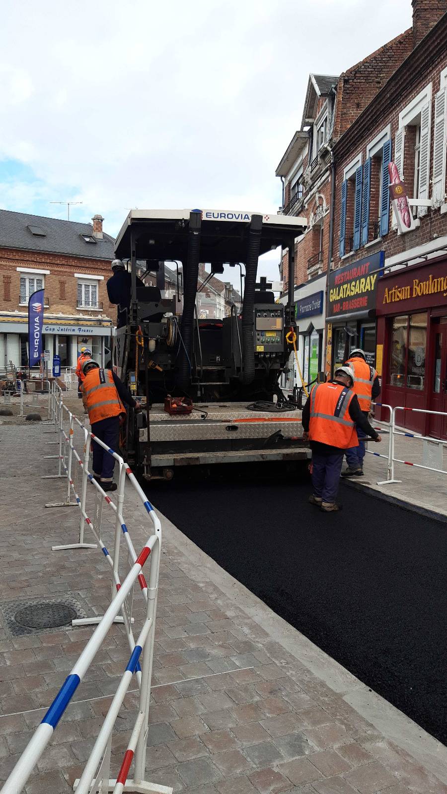 L’agence Eurovia d’Amiens réalise – depuis le 9 janvier 2023 et jusqu’au 28 février 2024 – la réhabilitation complète du centre-bourg de Ham (80). Ce chantier qualitatif comprend la rénovation de façade à façade de 5 rues et du parvis de la mairie. À l’issue des travaux, l’ensemble des trottoirs ainsi que le parvis de l’hôtel de ville seront pavés et constitués de bordures en pierres naturelles de type grès ou calcaire de bourgogne.