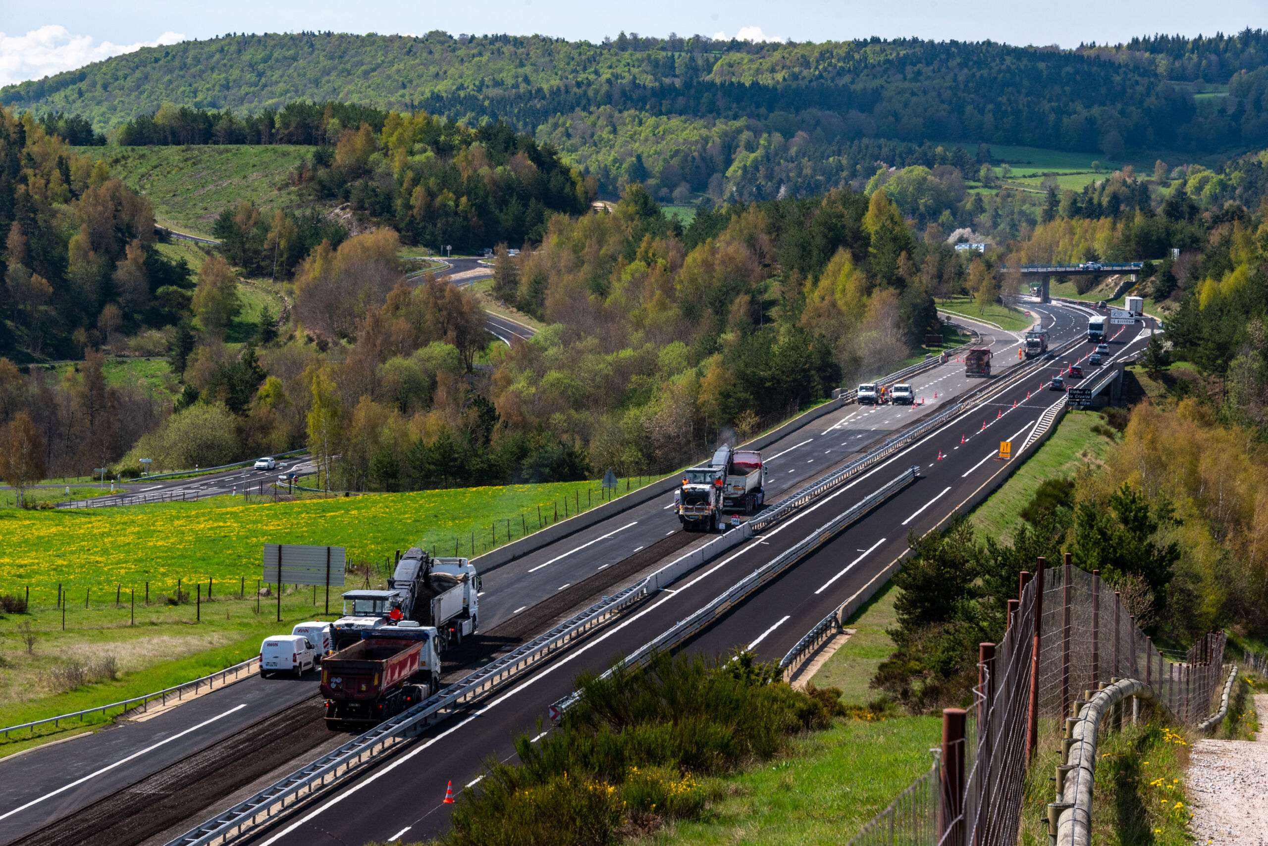 Le groupement composé du secteur d’Aurillac de l’agence Eurovia de Clermont-Ferrand (mandataire) et de Marquet TP a pris part, en mai 2022, au renouvellement de la couche de roulement d’une portion de l’A75 – reliant Clermont Ferrand à Béziers.