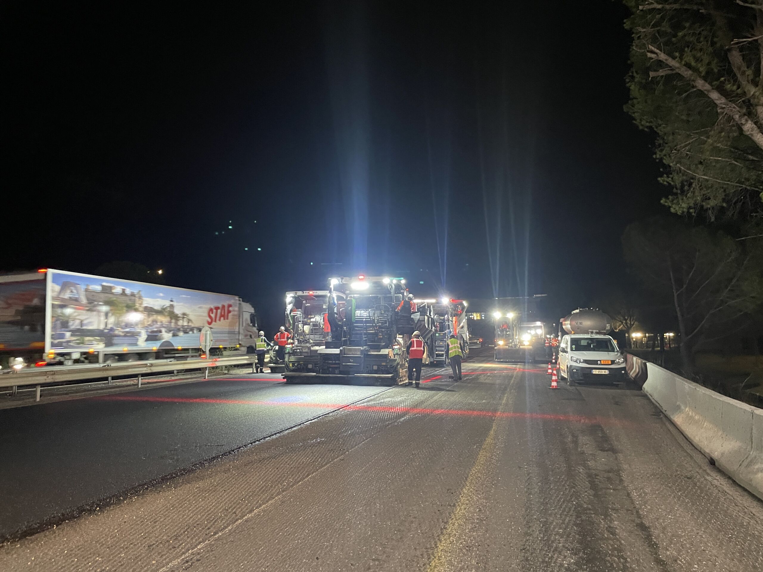 Afin de limiter la gêne occasionnée aux utilisateurs de ce tronçon de l’autoroute, les travaux ont été réalisés exclusivement de nuit et hors week-end. Jusqu’à 140 personnes ont été mobilisées chaque nuit.