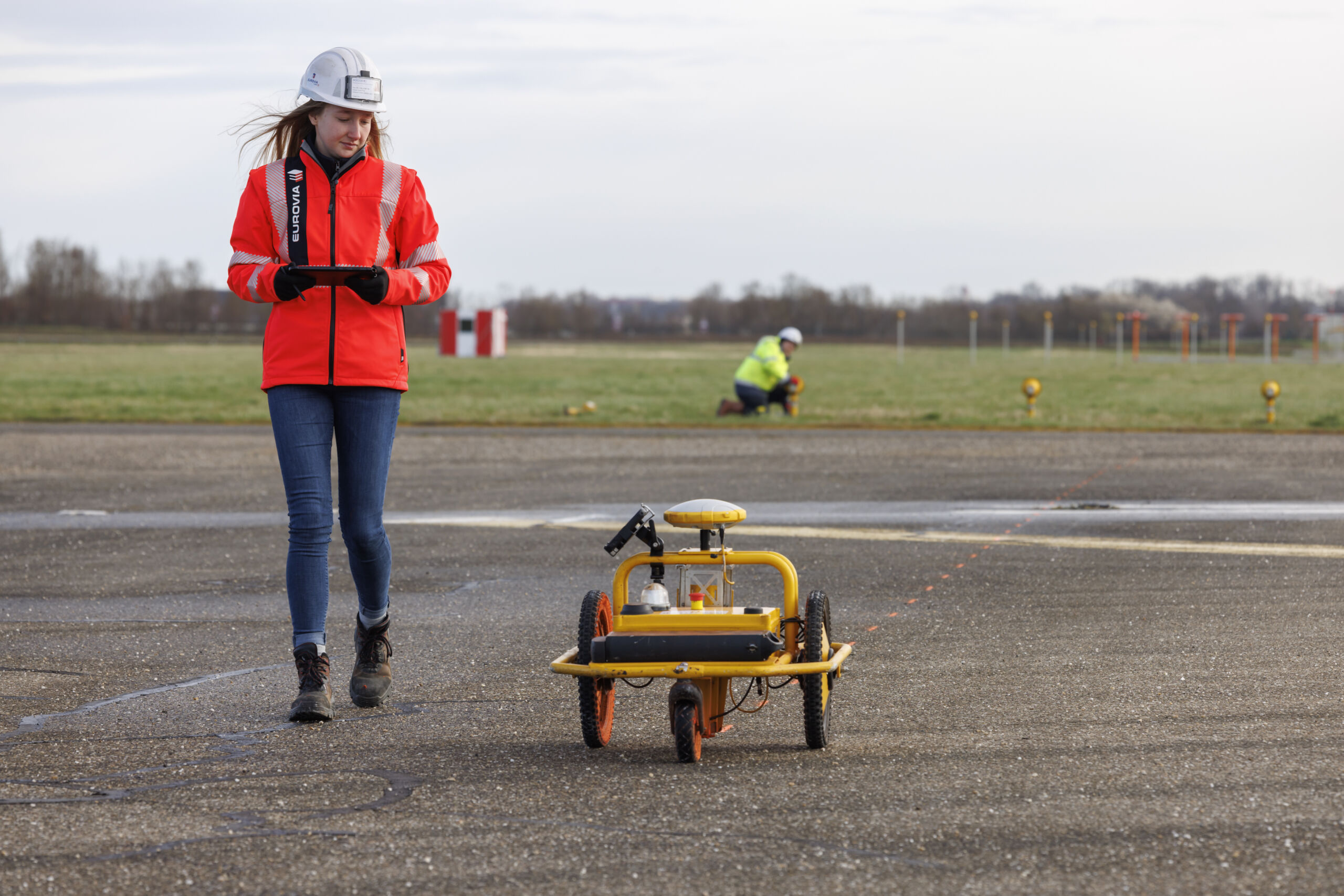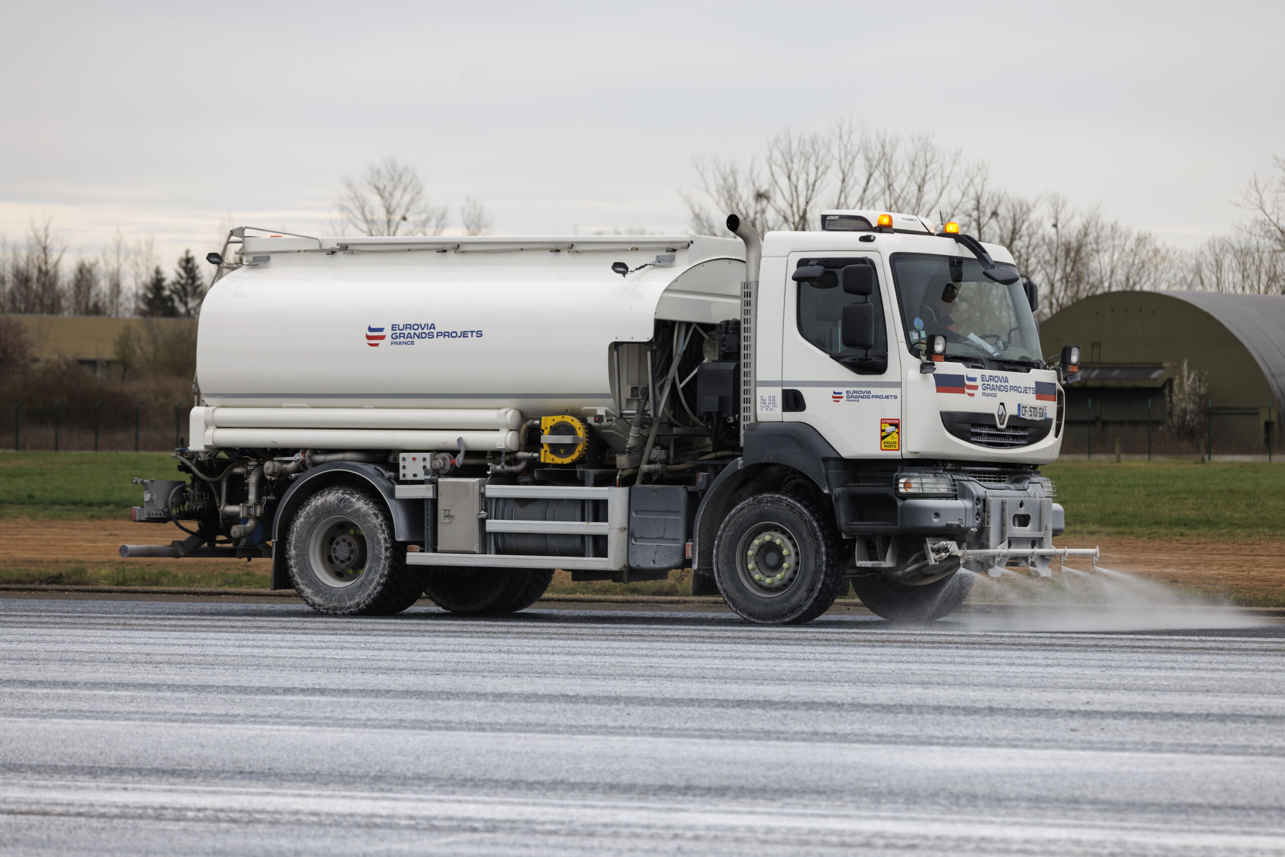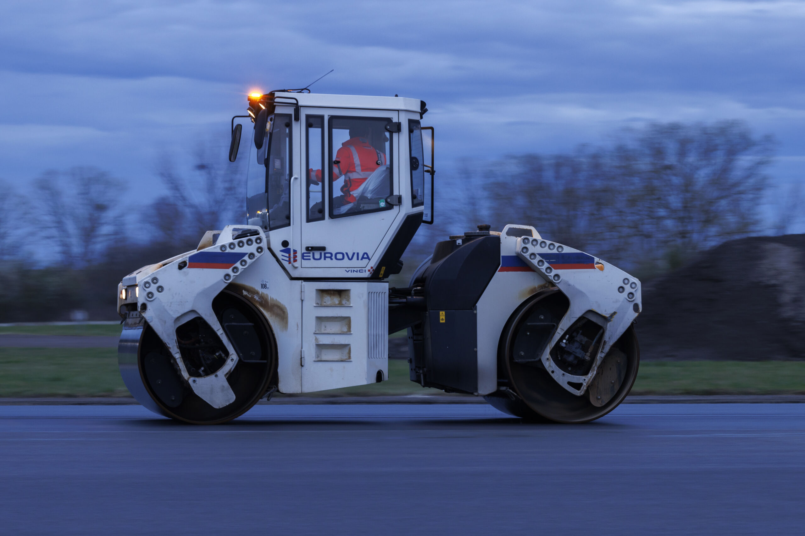 Le groupement composé d’Eurovia Grands Projets France (mandataire), de l’agence Eurovia de Rosheim et de DCP Airports a réalisé – du 13 mars au 14 avril 2023 – la réfection de la piste de 3 km de long et des taxiways permettant de rejoindre les aires de stationnement. Afin de minimiser l’impact des travaux sur l’activité commerciale – due à la fermeture de l’aéroport –, un phasage très précis a été élaboré sur les 5 semaines d’intervention du groupement. Les 2 premières semaines ont permis de réaliser le rabotage et la mise en œuvre des 35 000 tonnes d’enrobés sur la piste et sur les taxiways ainsi que la dépose du balisage lumineux.