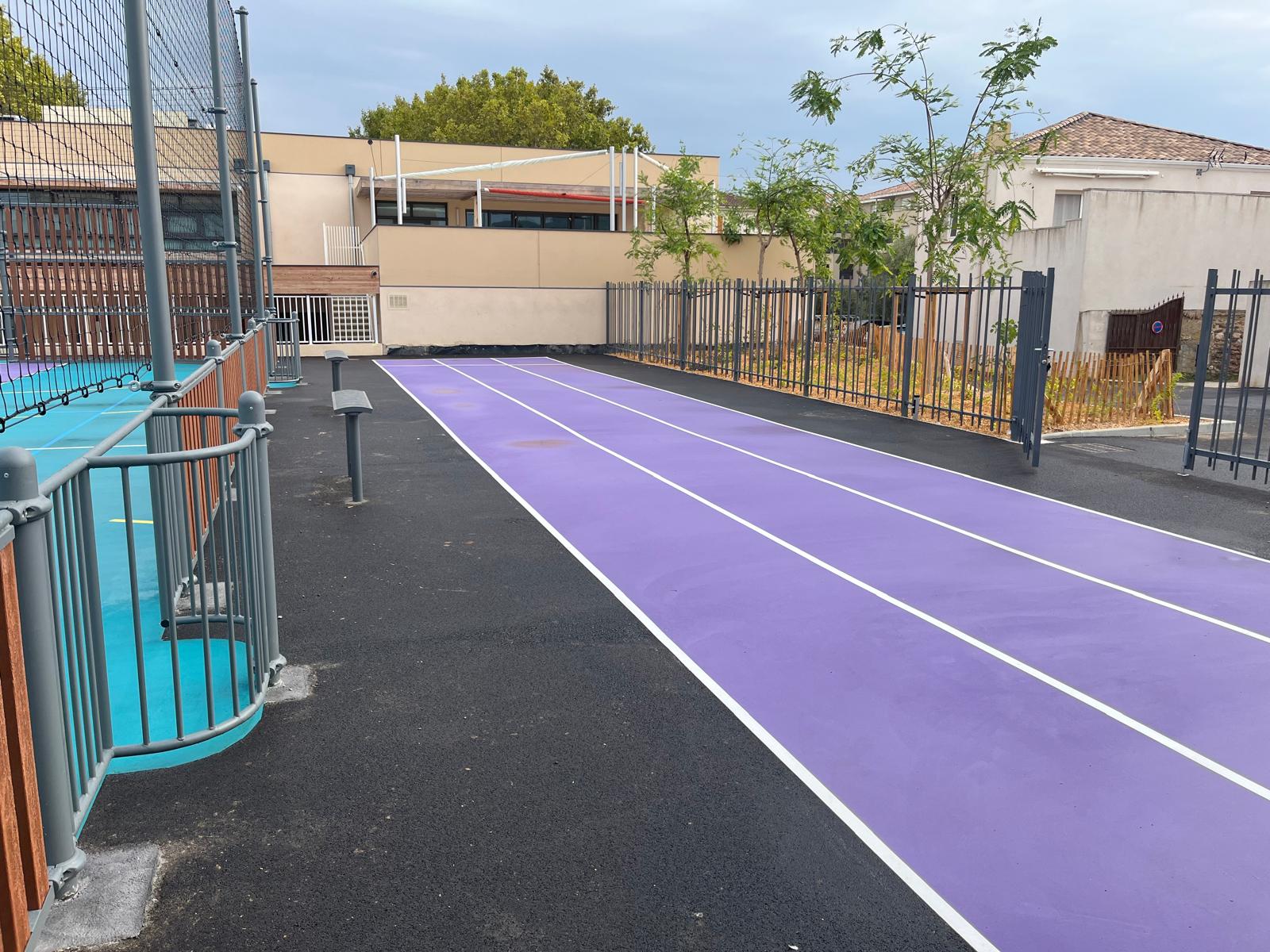 Ce city stade de 1 000 m² est destiné aux élèves des trois établissements scolaires situés à proximité immédiate. Polyvalent et coloré, il permet la pratique de plusieurs disciplines : football, handball, basket, volley et course à pied.