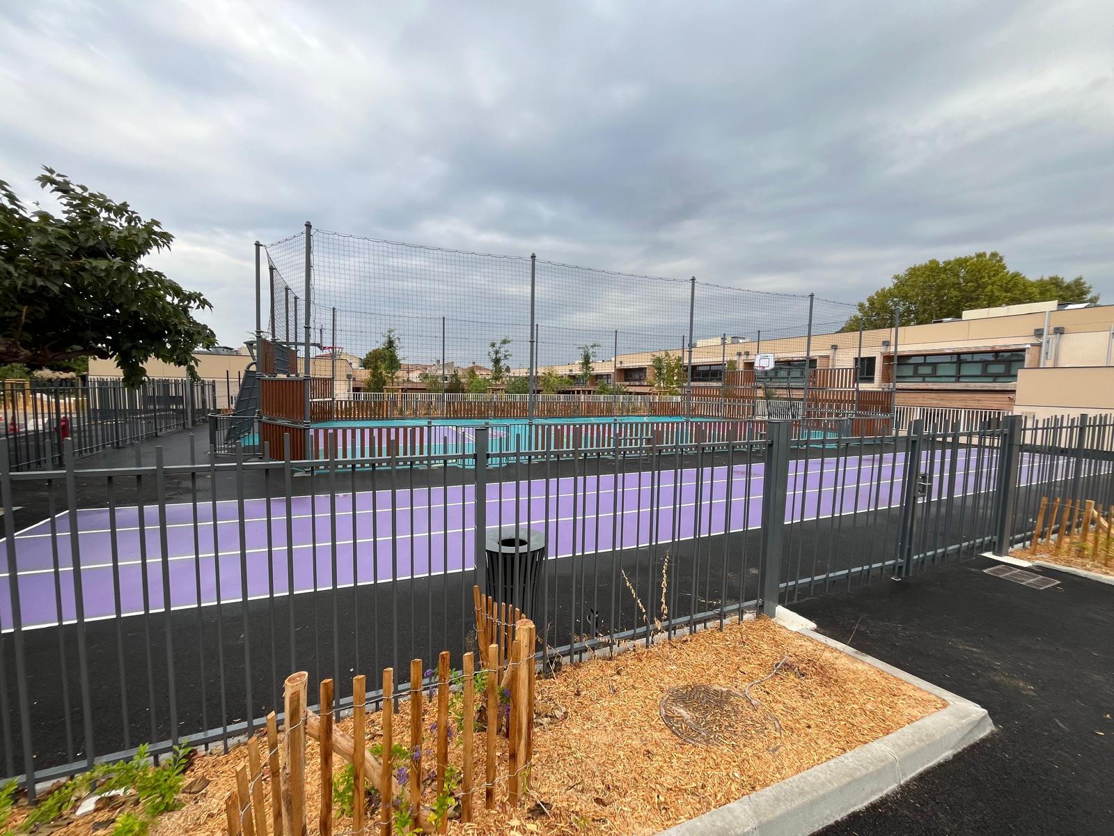 Un nouvel espace multisports a vu le jour à Six-Fours-les-Plages (83), sur le site du groupe scolaire Condorcet-Reynier. Réalisés entre le 23 juin et le 30 juillet 2025 et livrés début août.