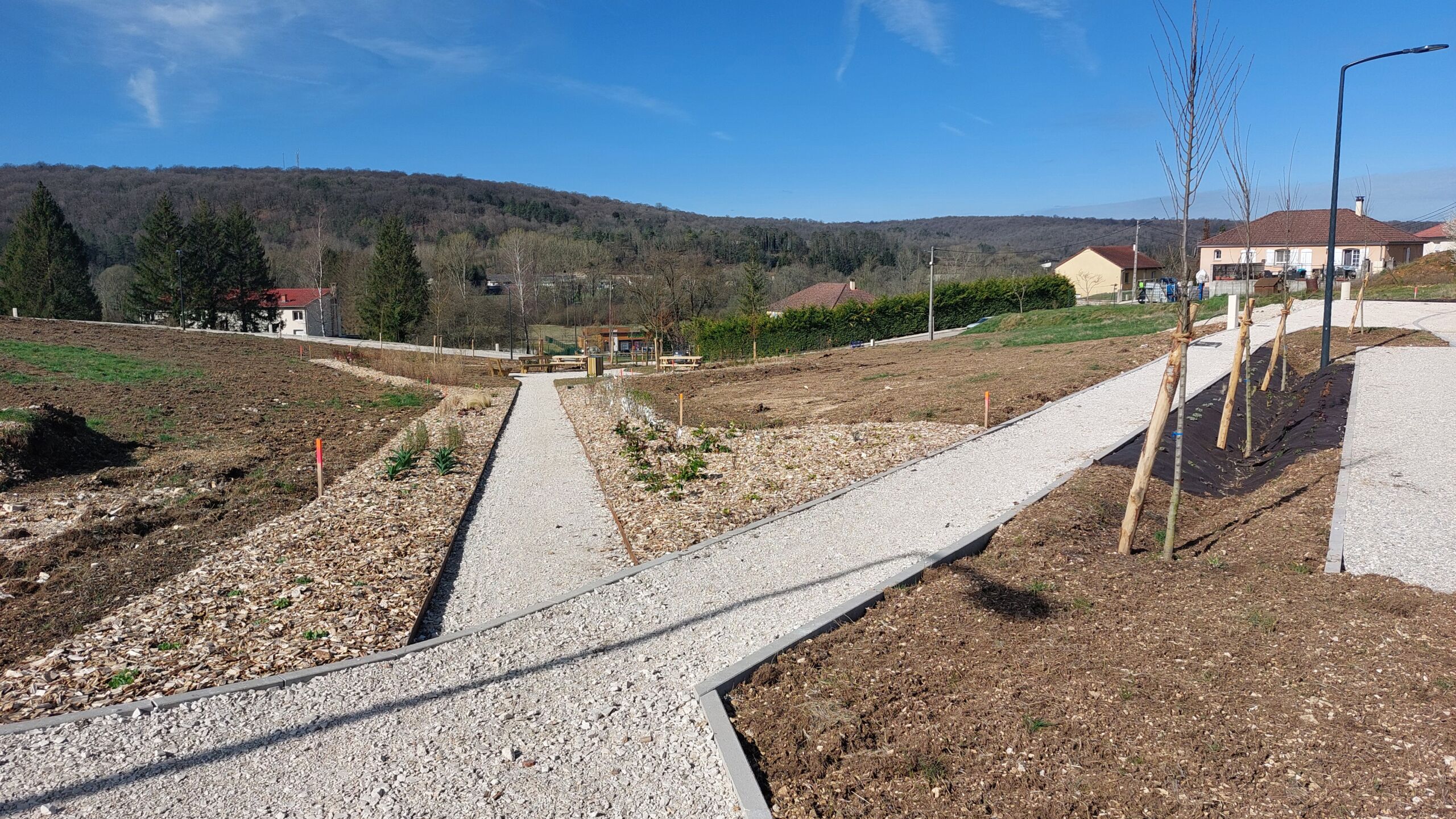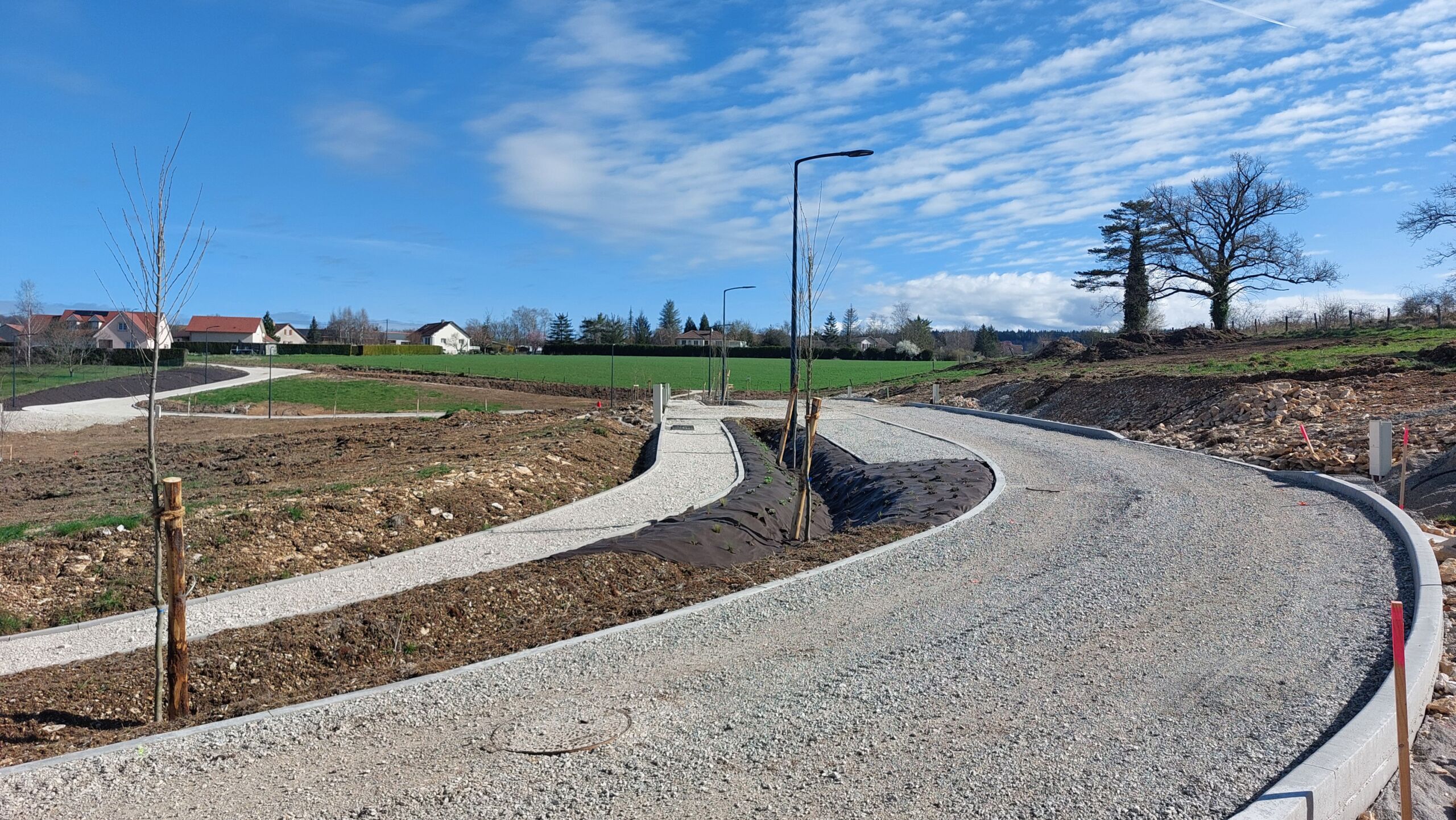 Les travaux, confiés à l’agence Eurovia de Chaumont, ont débuté en octobre 2024 et se sont poursuivis jusqu’en avril 2025. Ils comprenaient notamment le terrassement, la voirie et les réseaux divers. Une chaussée réservoir de 2 500 m² a été installée pour capter et rediriger l’eau excédentaire vers un bassin de rétention, tandis que l’eau infiltrée est absorbée par les espaces végétalisés.