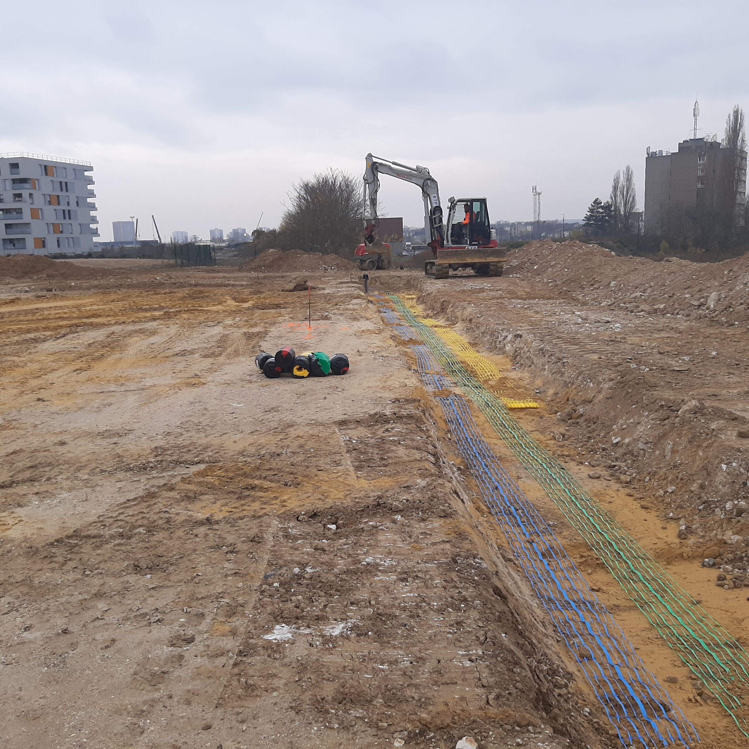 Le groupement composé de l’agence EJL Les Mureaux (mandataire) et de l’agence Eurovia de Saint-Quentin-en-Yvelines intervient d’octobre 2021 à mars 2023 à Mantes-la-Ville (78) pour réaliser les travaux de voiries et réseaux divers, les éclairages et espaces verts du lot G3 visant la construction de 230 logements et commerces.
